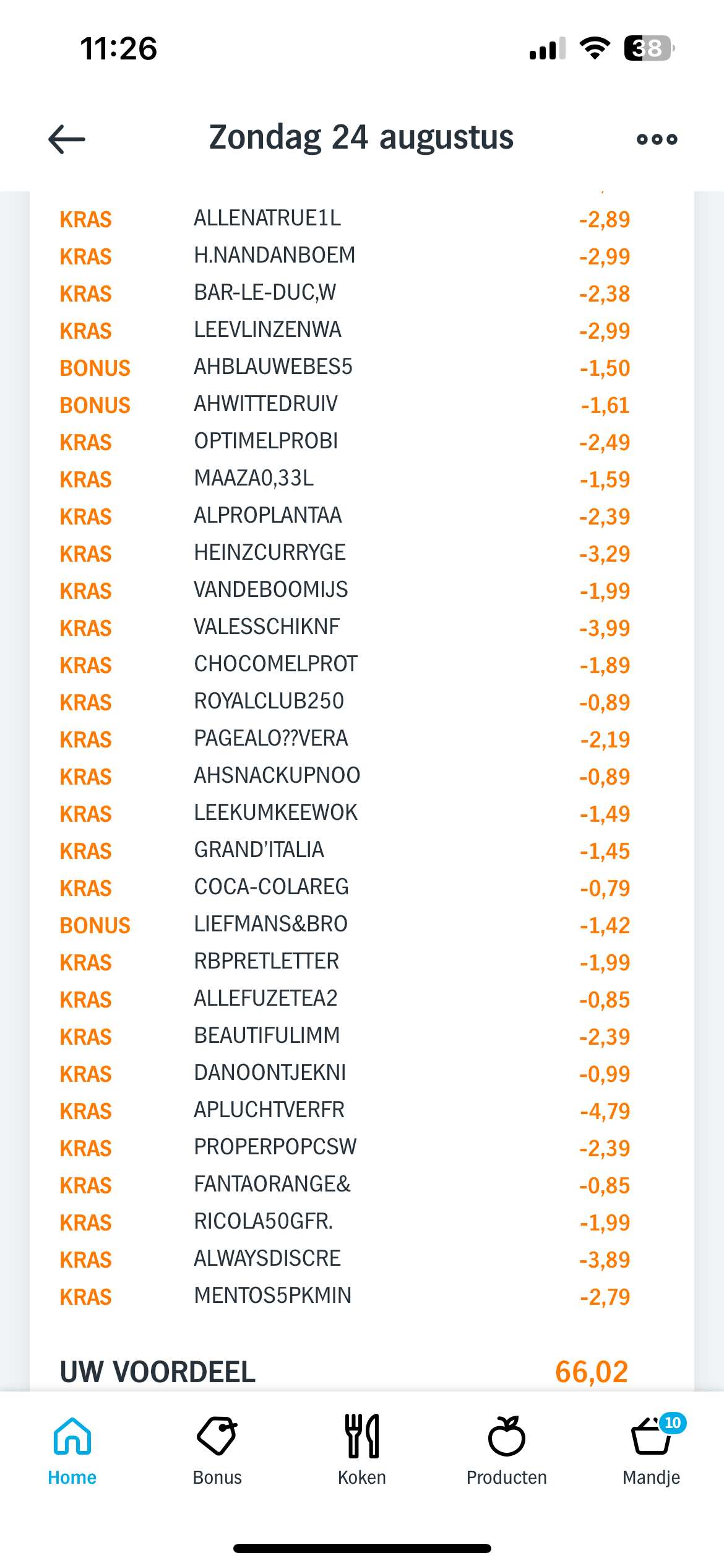 Had 66 euro bonus haha en zaten eigenlijk geen producten tussen die ik totaal niet hoef behalve danoontje knijpfruit.