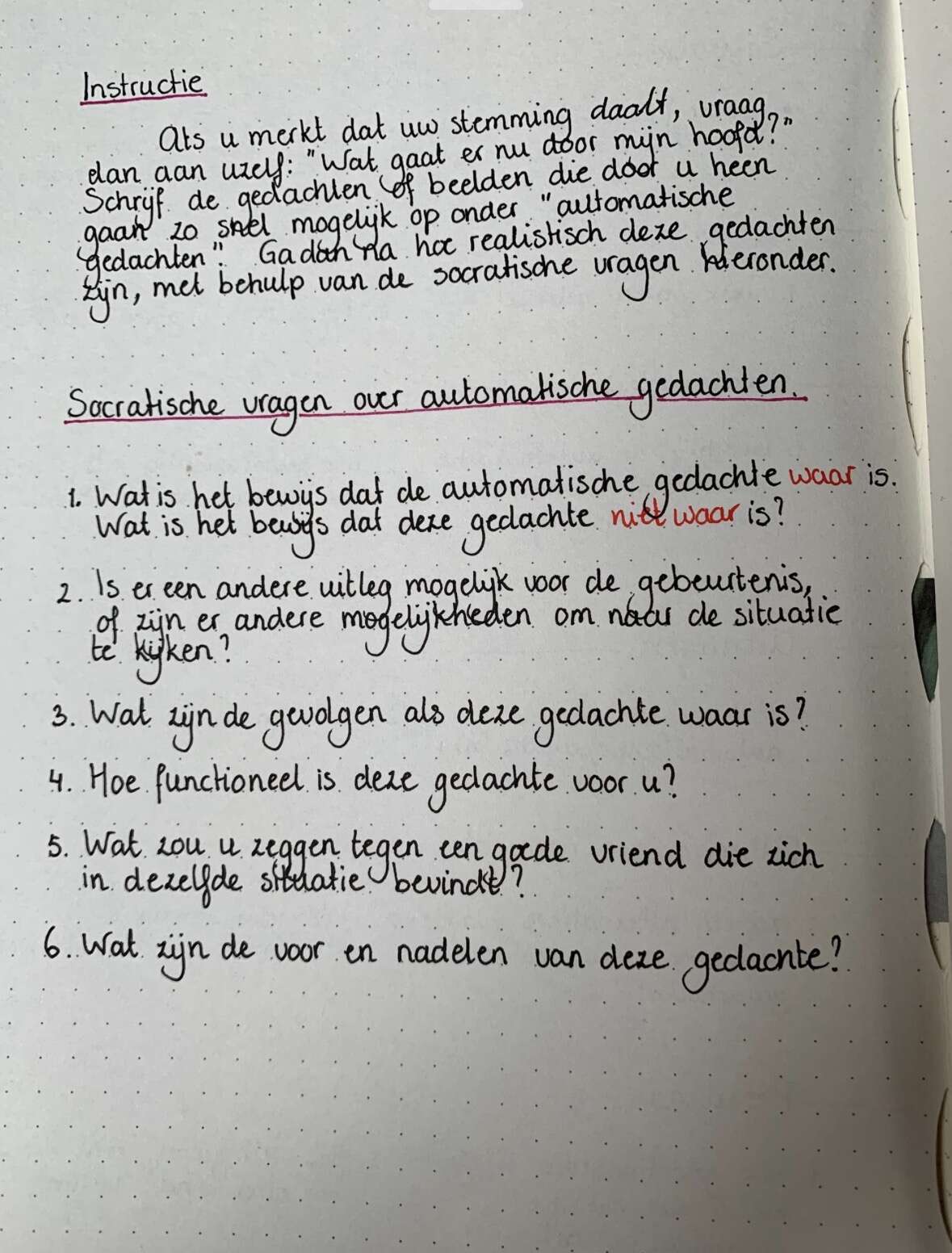 Ik heb de afgelopen paar dagen weer veel last van angstklachten. Ik ben inmiddels begonnen met CGT, maar we zitten nog in het eerste gedeelte waar mijn huiswerk vooral is dat ik aan mijn leef-/eetritme werk. Het âechte verdiepende werkâ komt nog. Het ging de afgelopen tijd echt over het algemeen met ups en downs prima, maar de afgelopen dagen heb ik weer een hyperfocus op 1 of 2 dingen en daar komt vandaag bij dat ik me constant zenuwachtig en angstig voel. Dat zorgt er weer voor dat ik heel erg op mijn hoede ben en als ik ook maar iets voel of merk ik gelijk meer in paniek schiet. We hebben het al wel gehad over dit cirkeltje en ik herken hem nu ook, maar nog geen idee hoe ik het doorbreek ![]()