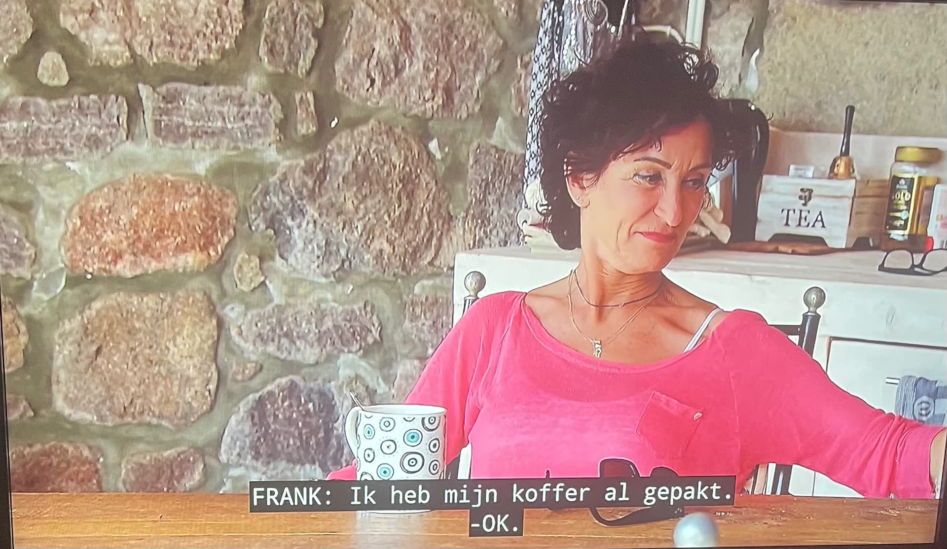 Ingrid bleeeef ook maar herhalen; ‘ik denk dat je het al aanvoelt’, omdat Frank gewoon afwachtte wat ze ging zeggen. Toen 'ie dan uiteindelijk maar reageerde over de koffer ging ze in de biecht zeggen dat ze dat voorbarig vond. Vrouw, wat wil je?