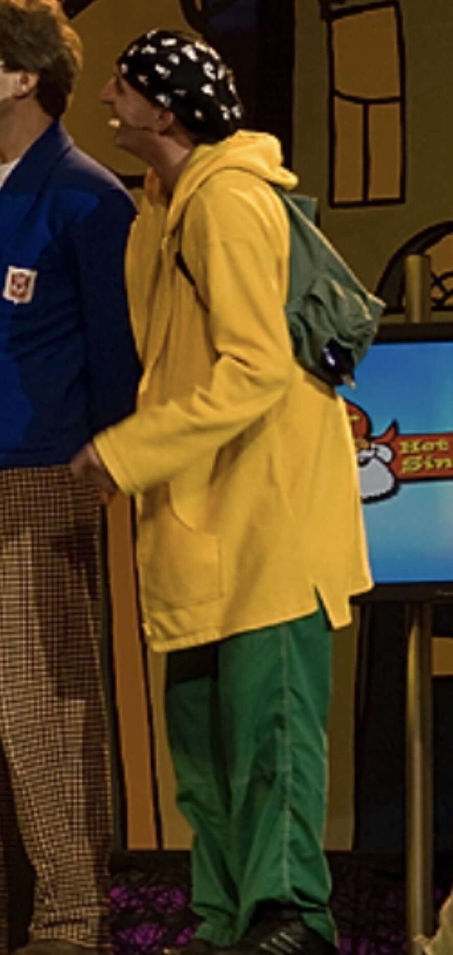 Ik vind die man uit Antwerpen (die naar de kleurrijke vrouw uit Oostenrijk gaat) er echt uitzien alsof hij eigenlijk een bouwvakkertype is en zich verkleed heeft