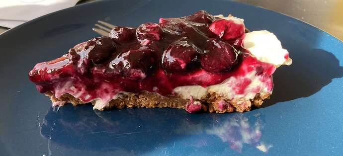 Gisteren begonnen aan mijn (eerste) cheesecake en vandaag afgemaakt door de blauwe bessen compote te maken.