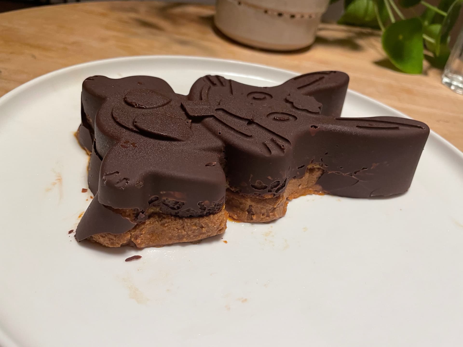 Goed de whipped butterscotch krijgt in een ander recept nog een nieuwe kans en ik weet nu wel dat dit vormpje het vrij leuk doet met zo’n chocoladelaagje
