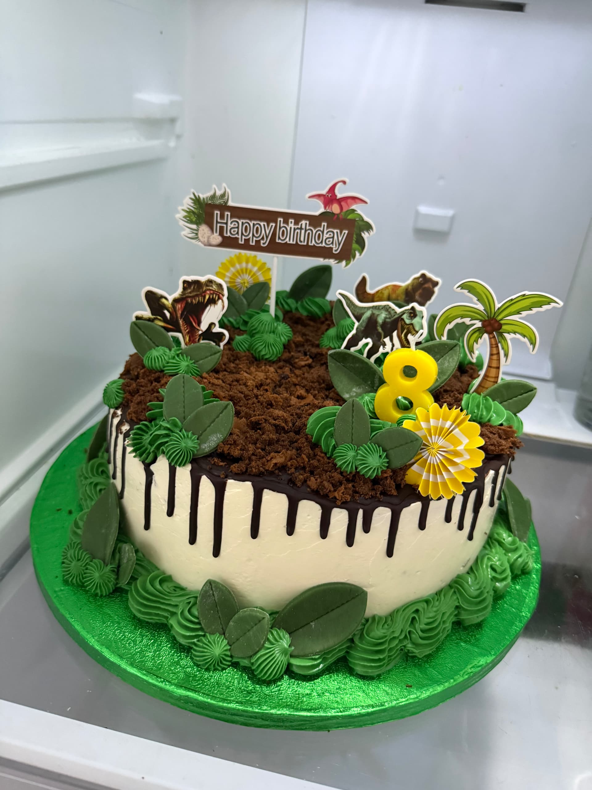 Geen mooie foto gemaakt, dus jullie moeten het doen met deze koelkast foto de dino taart voor mn neefje die 8 werd.