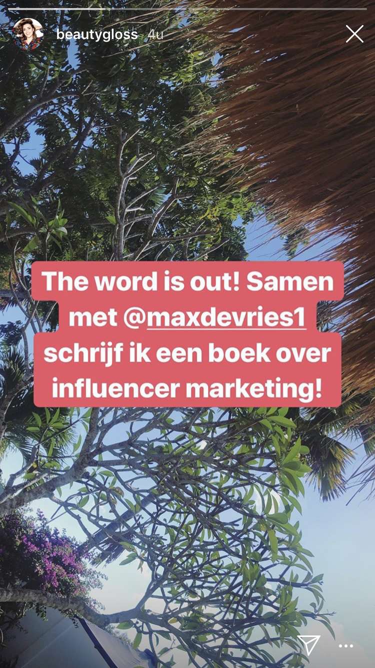 Weet je wat ik zo opvallend vind? Dat Max (en Mas) vinden dat ze DE kennis hebben om een zeer vernieuwend boek te schrijven, maar dat Max nu maar 2 influencers heeft in zijn agency. Namelijk Mas en zān eigen vriendin Marije. Ik krijg daar hetzelfde gevoel bij als mensen die zogenaamd een succesvolle startup runnen, terwijl ze alleen voor familie en vrienden werken.