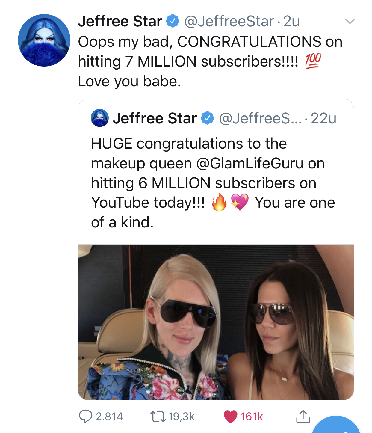 Ik moet wel lachen om die comments bij die live video met die teller “will you do a give away when you hit 14 mil?” En “congratz on hitting 15mil subs AGAIN”