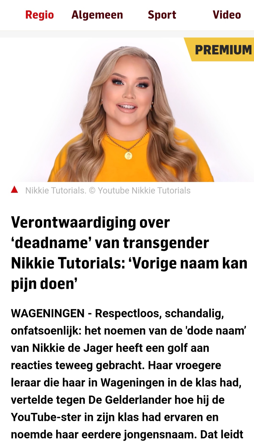 Dit is het antwoord van het AD op mijn reactie over de deadname van Nikkie: