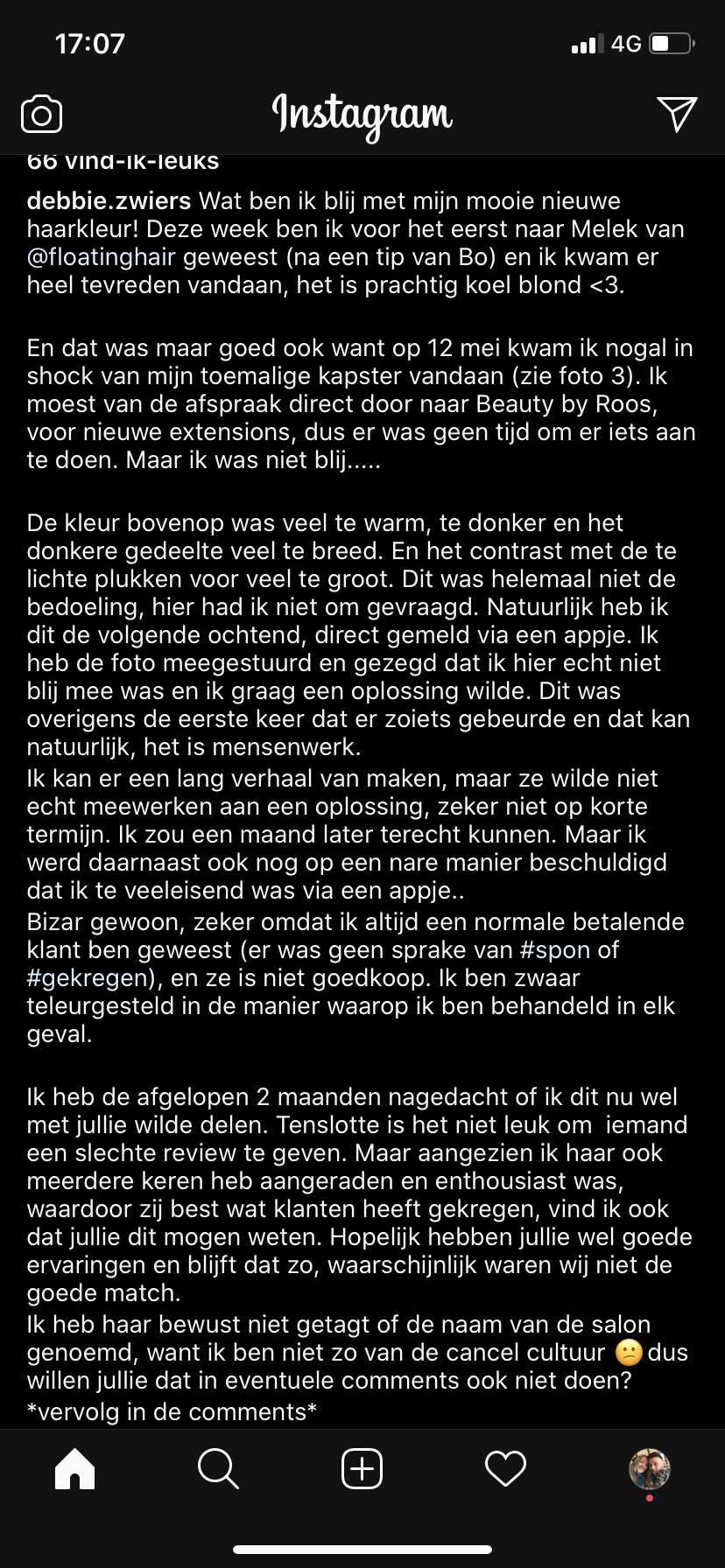 Niet zo van de cancel cultuur, maar wel deze post op insta zetten onder het mom van ‘Kijk hoe blij ik ben met mijn nieuwe kapper! En hoefde er niet eens voor te betalen!1!!’ Vind Debbie leuk om te volgen, maar dit was niet nodig.