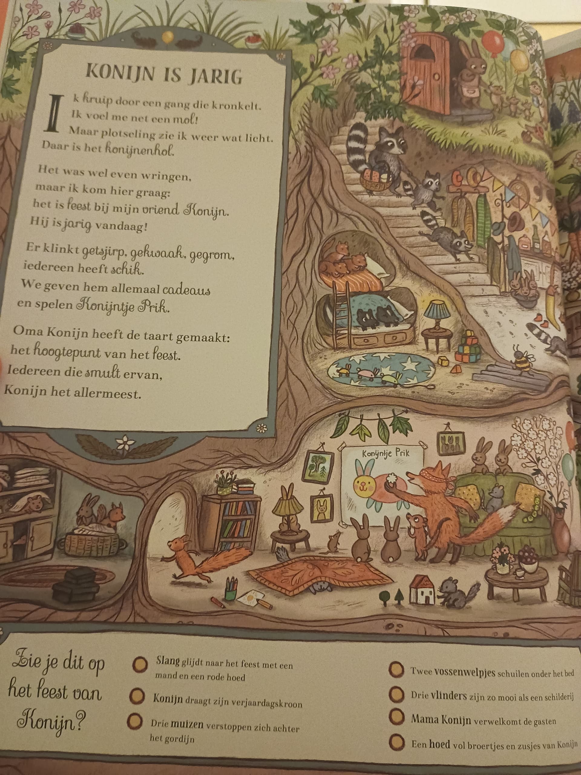 Random tip: het zoekboek Bezoek het bijzondere bos van beer. Hele leuke tekeningen, kleine rijmpjes erbij, heel veel te zien en te zoeken.