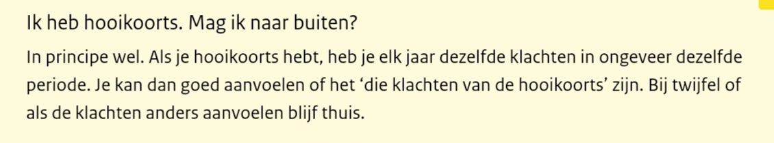 De richtlijnen waren / zijn dat als je hooikoorts hebt dat je thuis moet blijven.