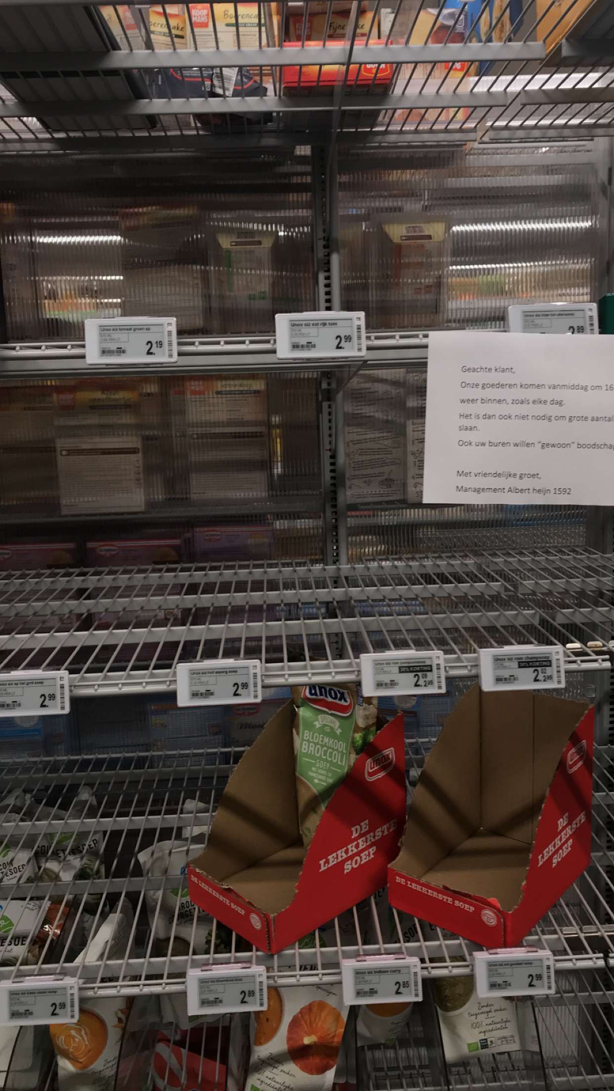 Houdbare zuivel, afbakbroodjes, groente, rijst en pasta was bijna allemaal op en bij het wc papier ging het ook super snel.