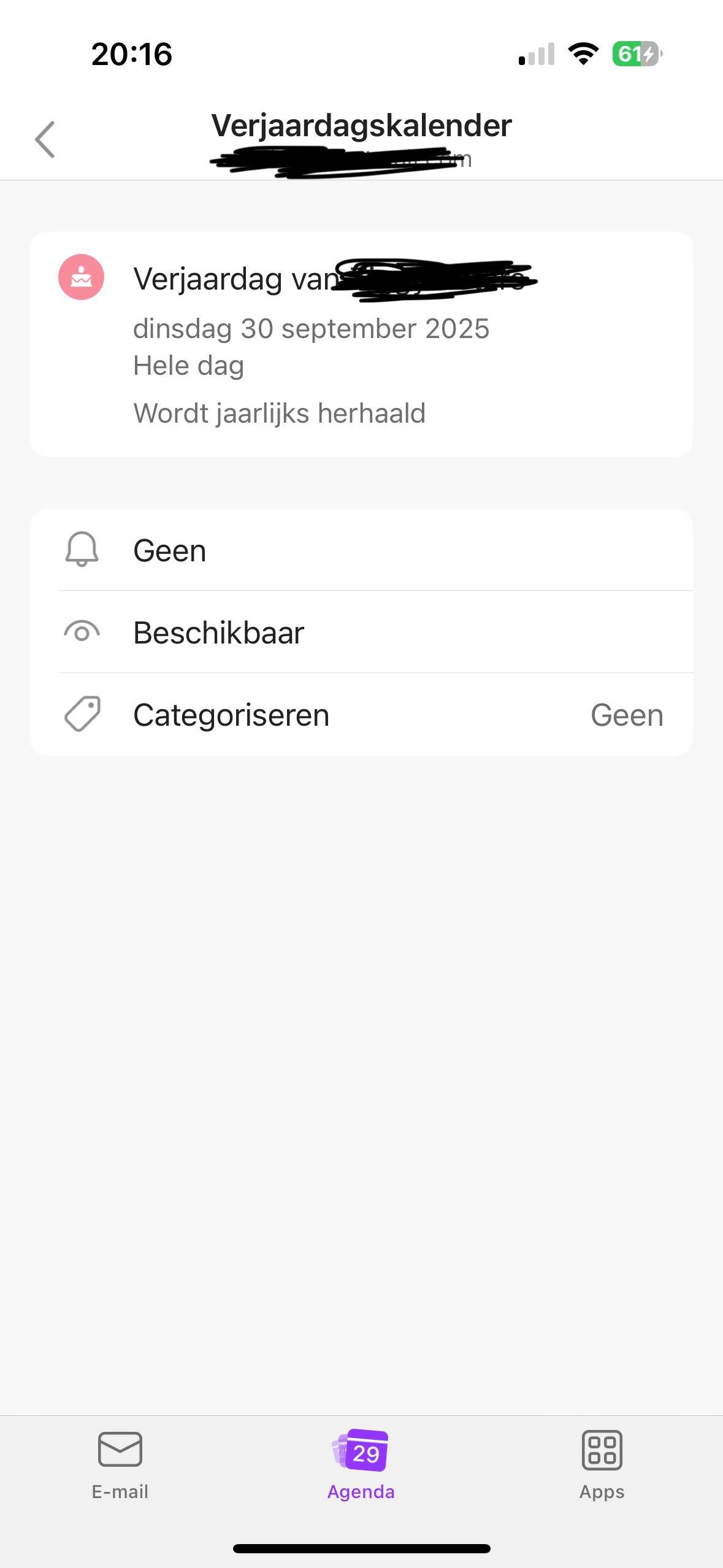 Bij mij staat de verjaardag dan in de telefooncontacten. Ik heb dat alleen bij de schoonvader van m’n zus