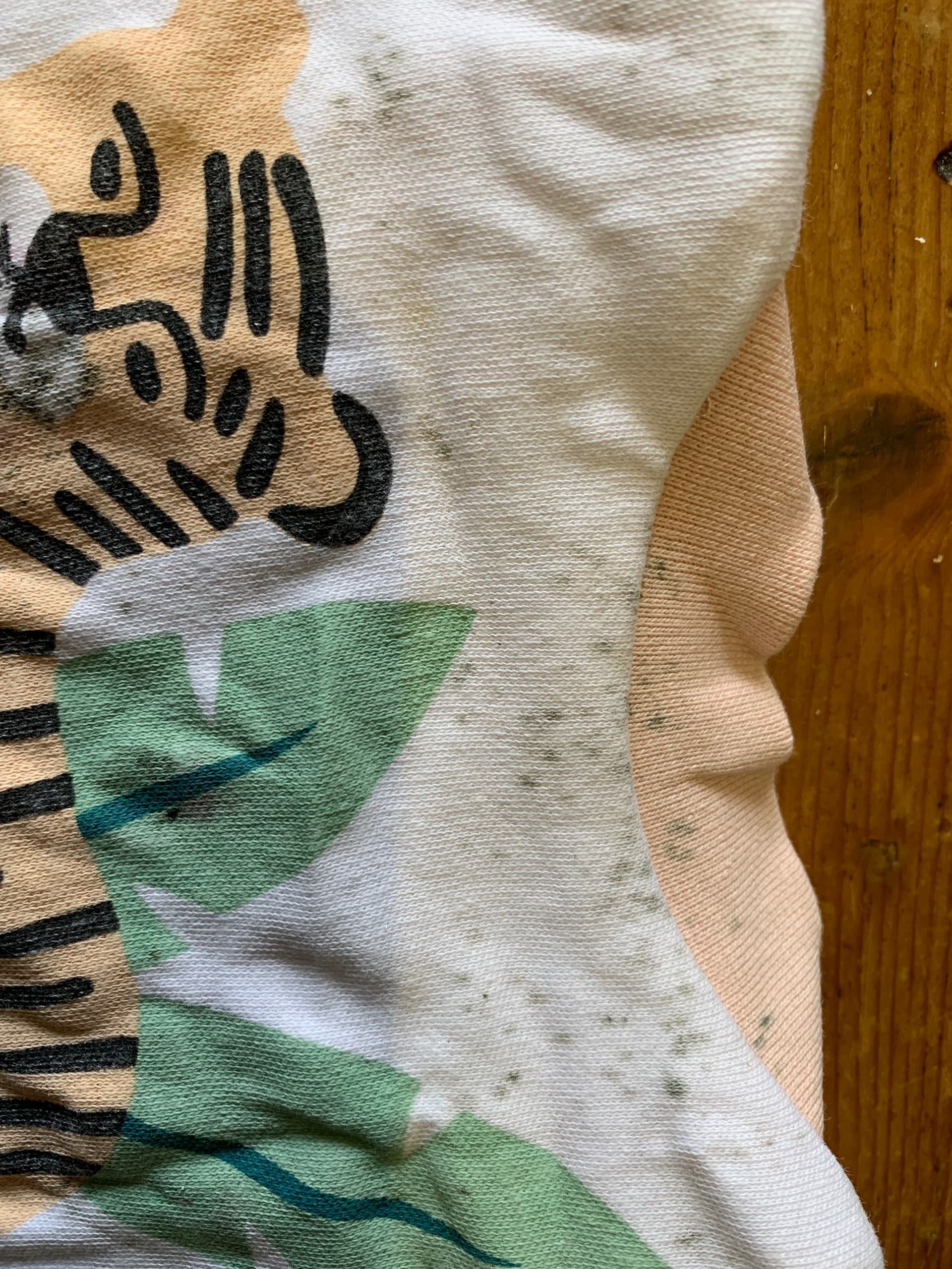 Het lijkt idd op een soort schimmel of van bepaald eten waarvan je de vlekken er gewoon niet uit krijgt. Als je dat eten dan ook af doet met die dokjes kan het verklaren waarom het op kinderkleding zit en die doekjes. Je hebt bijvoorbeeld ook vlekken van een bellenblaas die er nooit uitgaan, die zijn ook zo hardnekkig. Mischien dat het bepaald eten/drinken ook wel zo is. Ik vind het gek dat het dan alleen op de doekjes is en kinderkleding (ik ga van kinderkleding uit door je foto). Of zit het ook op jouw kleding of op die van je (eventuele) partner, broers, zussen?