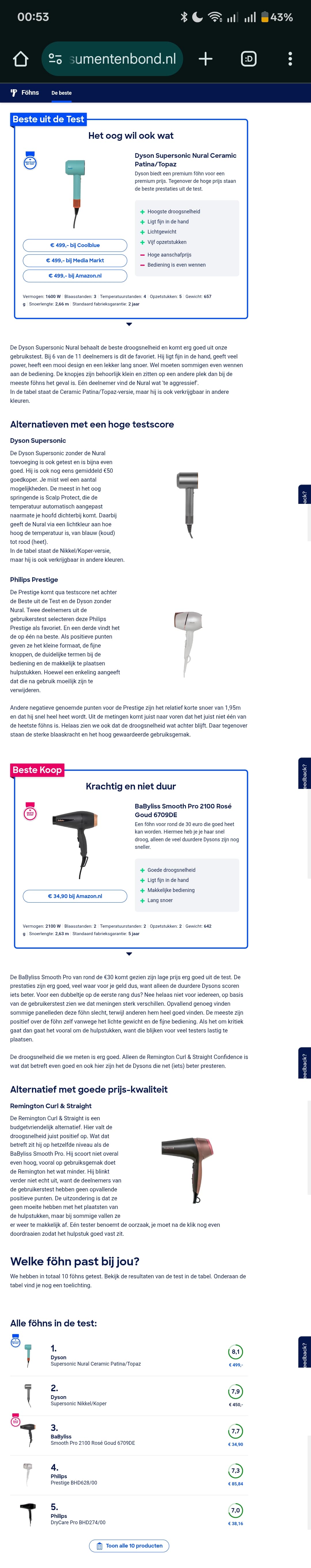 Zou iemand met mij de testresultaten Beste föhns 2025 van de Consumentenbond willen delen? https://www.consumentenbond.nl/fohn/de-beste-fohns. Dank vast!!