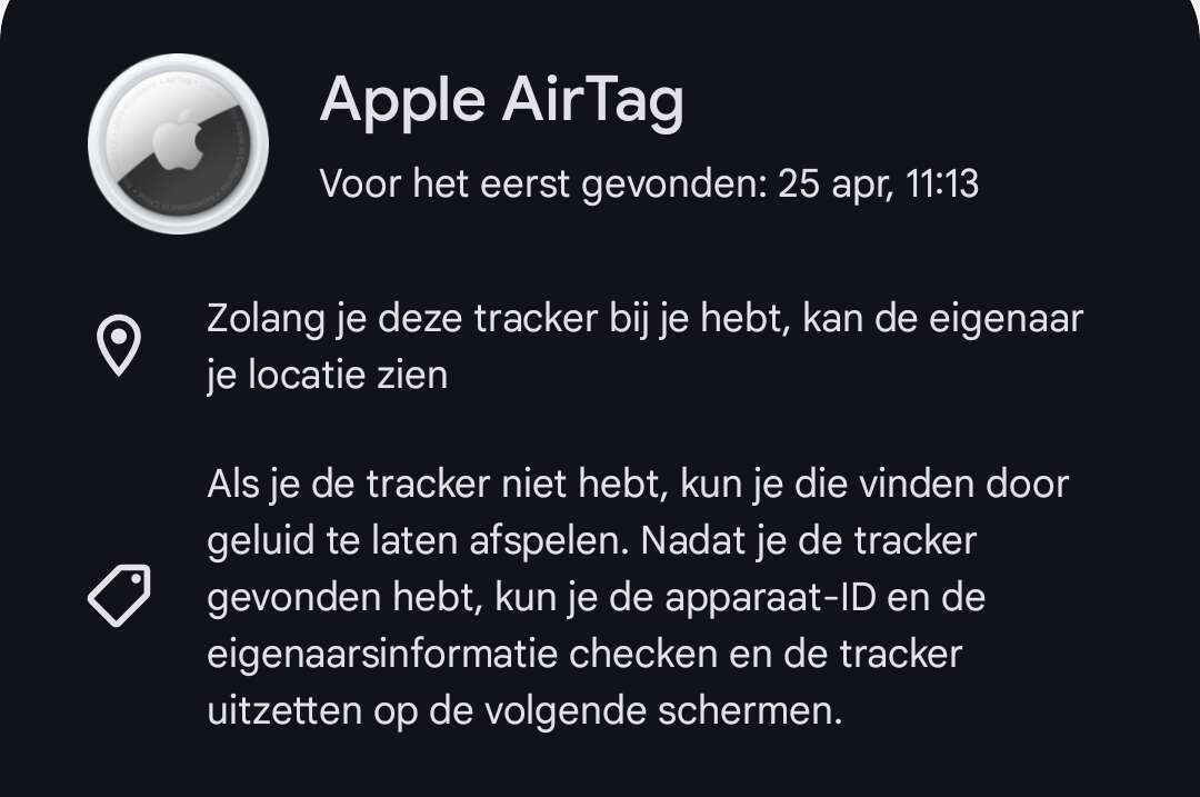 Ik krijg een melding dat er een onbekende airtag is gesignaleerd. Maar ik kan die verder niet vinden en de plekken die hij op de kaart laat zien zijn ook niet logisch. Moet ik me hier dan zorgen over maken? Ik kom alleen op amerikaanse reddits over stalkers.