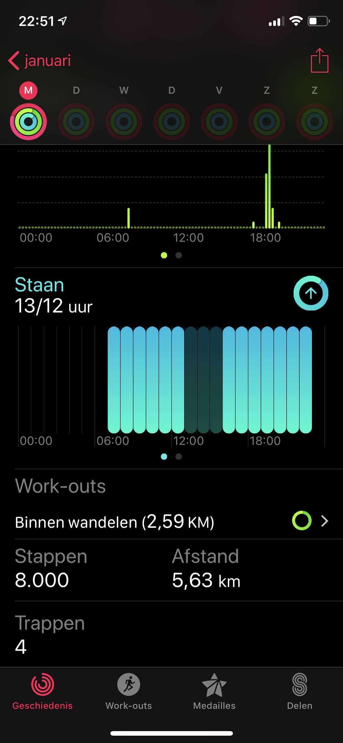 . Een andere app heeft 11 stappen meer gemeten, maar vond dit leuker om te zien.