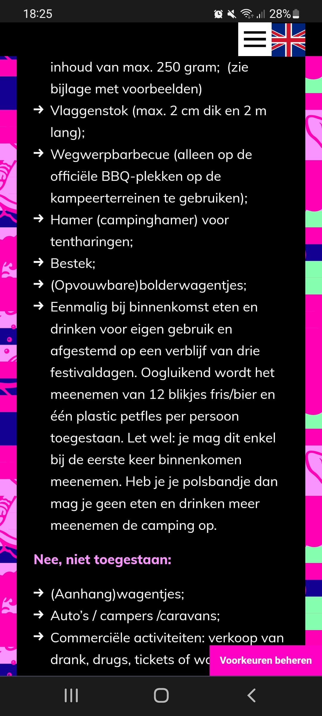 Waar hebben jullie gelezen over die boodschappen regel op pinkpop?