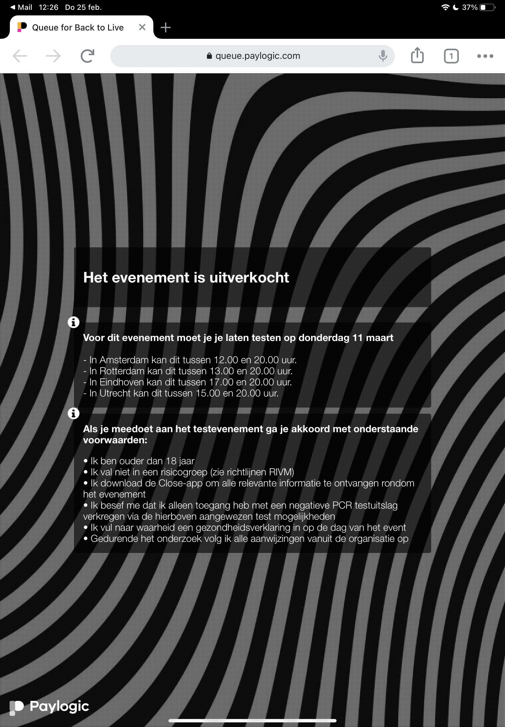 Ik hoorde dt er 60.000 aanmeldingen waren voor die test evenementen, het mag duidelijk zijn dat er behoefte is aan evenementen