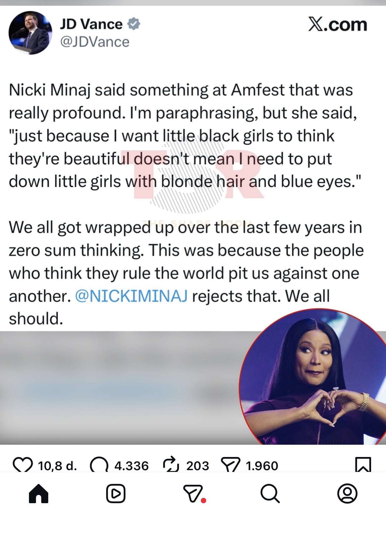 Ja, ik snap het niet zo goed maar dit kan toch de enige reden zijn. En ik zeg helemaal niet dat er geen LGBTQ±mensen zijn die voor Trump stemmen, Nicki haar laatste acties schreeuwen echt wanhoop. Hoezo ga je in naam van Trump de VN toespreken om meer aandacht te vragen voor de christenen in Nigeria en nu ga je bij Erika KIrk op het podium roepen dat Trump een goed voorbeeld is voor jonge mannen en dat als je als jongen geboren bent, je ook jongen moet blijven want dat is het enige juiste.