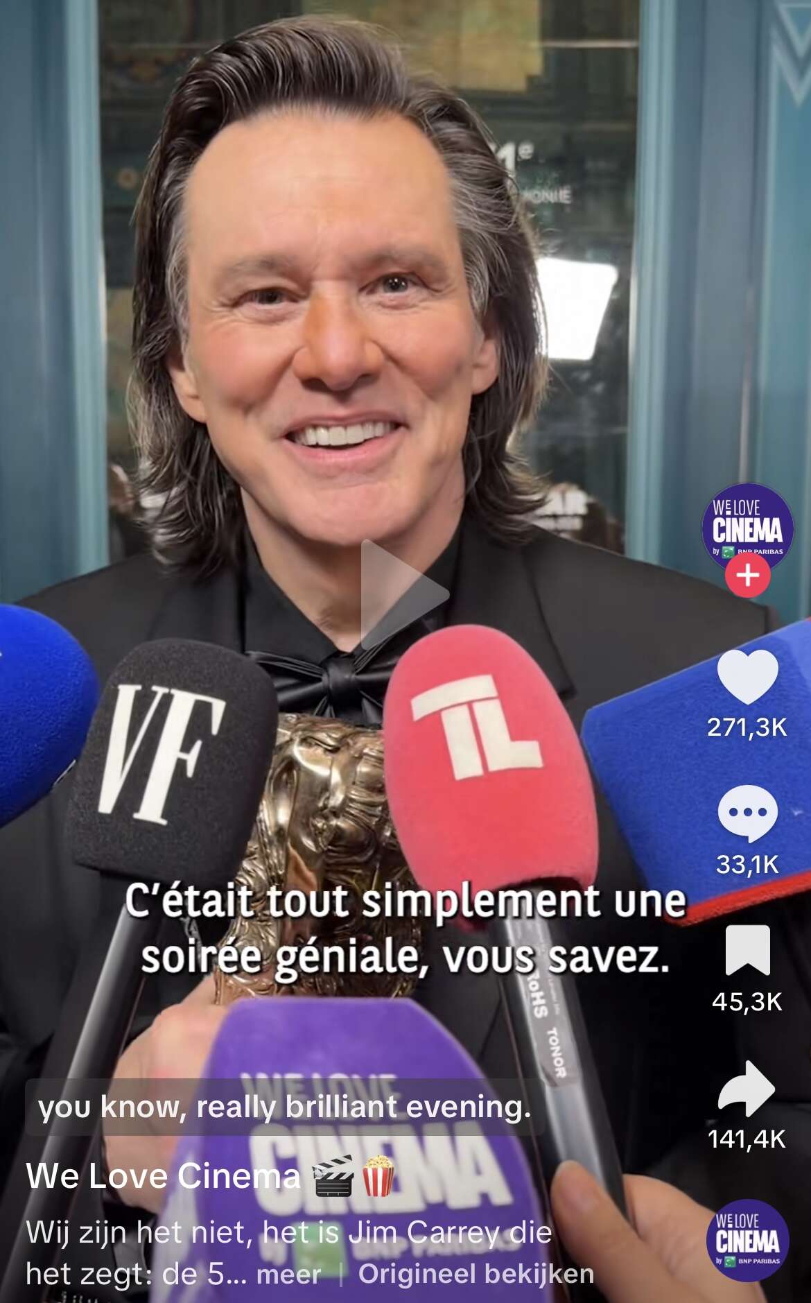 Dit zag ik ook voorbij komen. En dat Jim Carrey bruine ogen heeft en deze ‘kloon’ blauw.