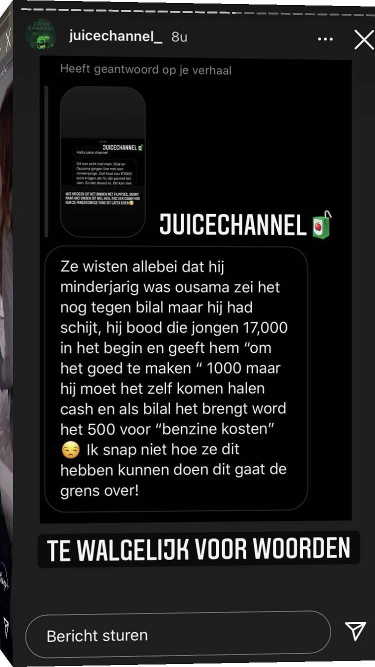 Story op insta van @Jochemosl heb ik iig geforward naar Telegraaf en snownieuws. En account van Bilal gerapporteerd. Hopelijk helpt het als veel mensen dat doen