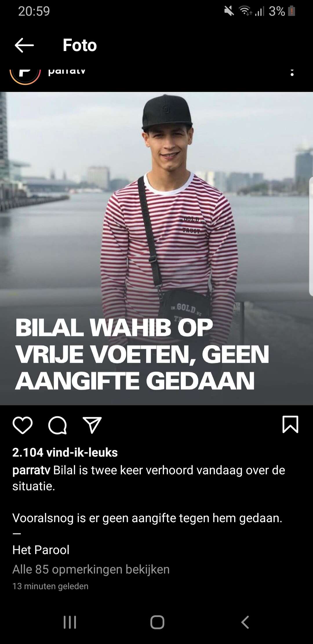 Nou, hij is weer op vrije voeten en er is geen aangifte tegen hem gedaan lees ik zojuist.