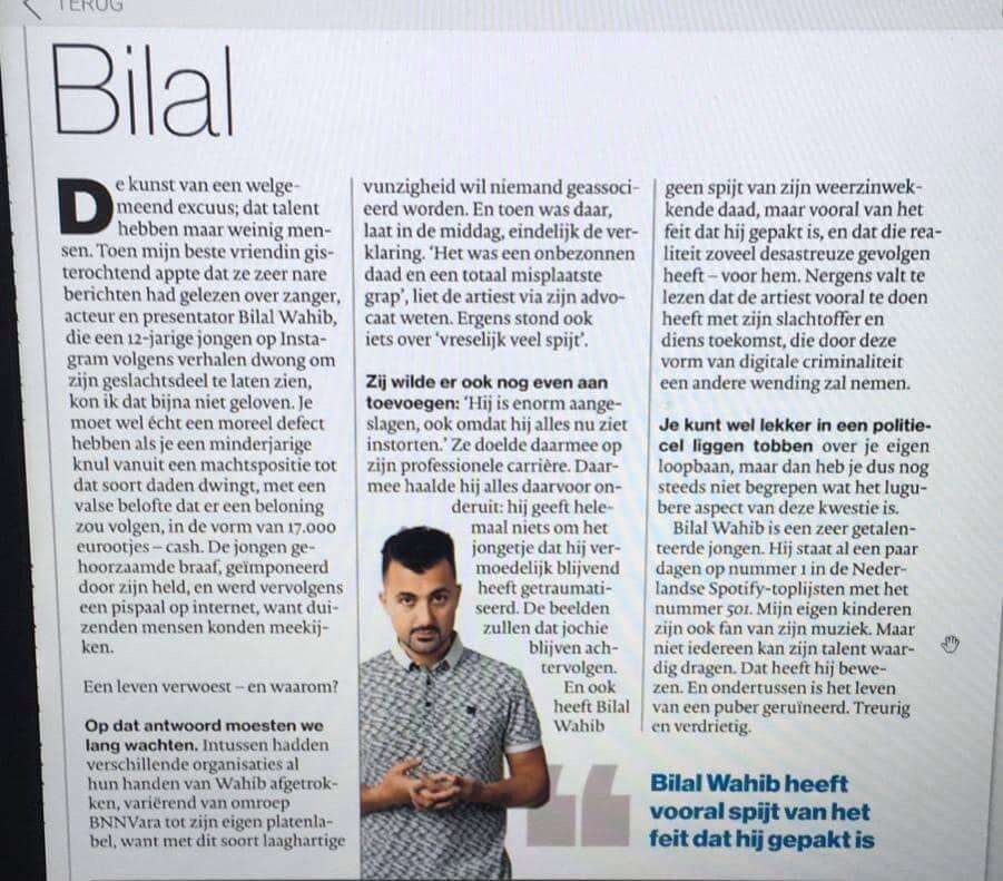 Mja de media kennende zal het helaas niet zo gaan. Want bilal is niet zon steriotype bad boy zoals boef (volgens de media)