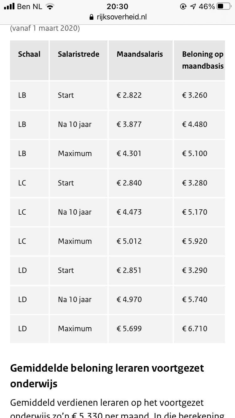 Wist niet dat een startsalaris van een leerkracht hoger ligt trouwens!