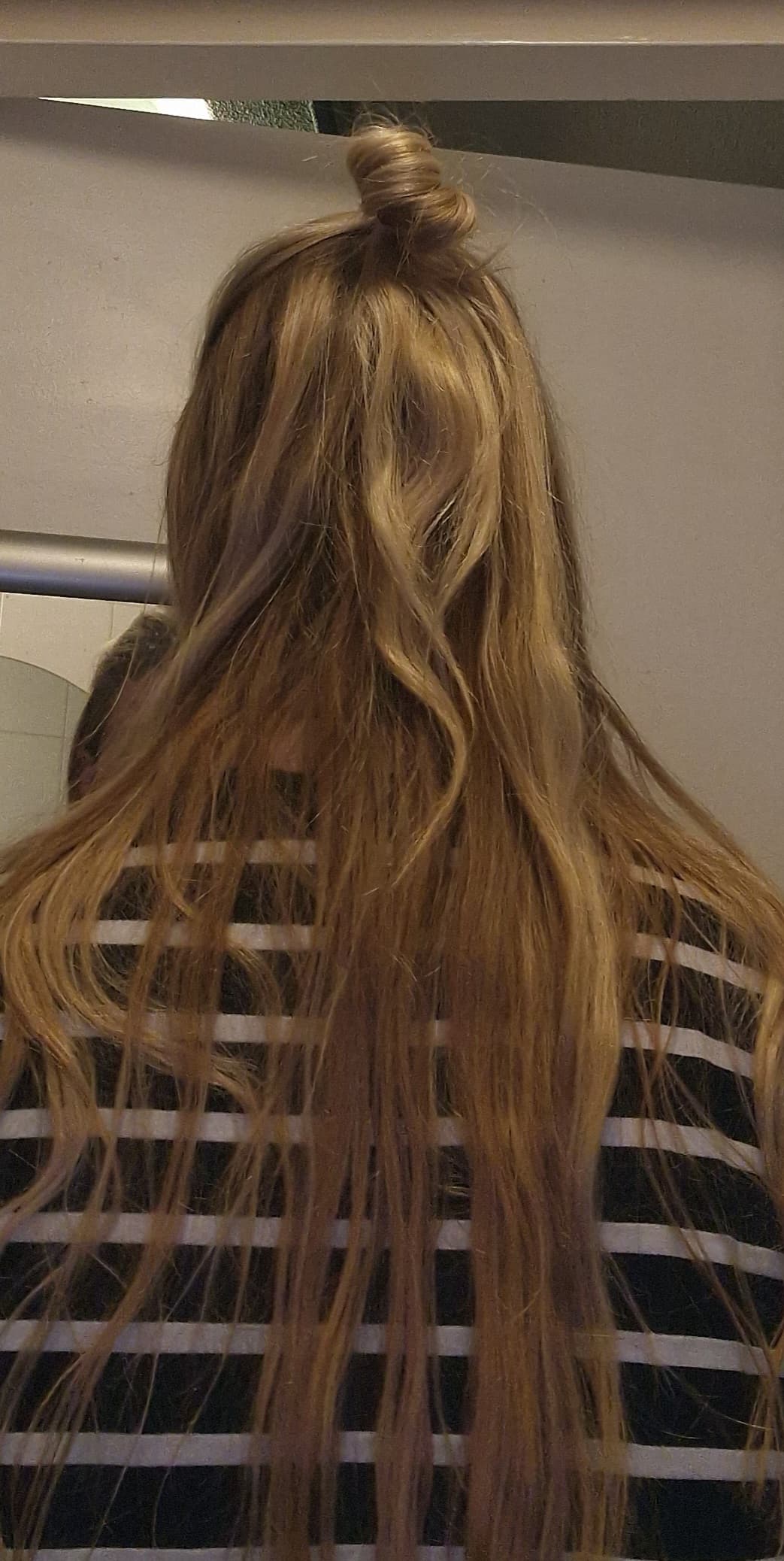 Heel veel droogshampoo boven en na het douchen doe ik in de punten argan olie en een leave in voor gespleten haarpunten. Ik hoop altijd dat als het zacht is door de product, het ook minder in strengen valt. Maar ook al gebruik ik niets, dan valt het ook zo. Er moet zeker 10 cm af, maar als er echt weinig aan te doen is ga ik denk ik nog korter. Vind het zo lelijk! Haha