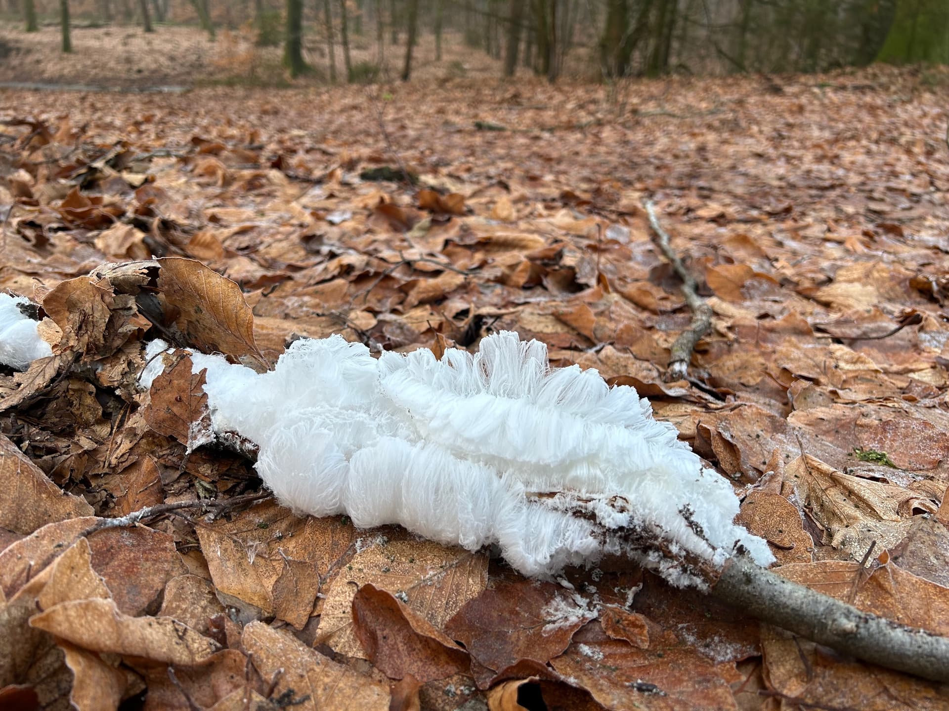 Echt heerlijk lopen als het vriest (-2), alle bladeren knisperen en er is ijshaar: