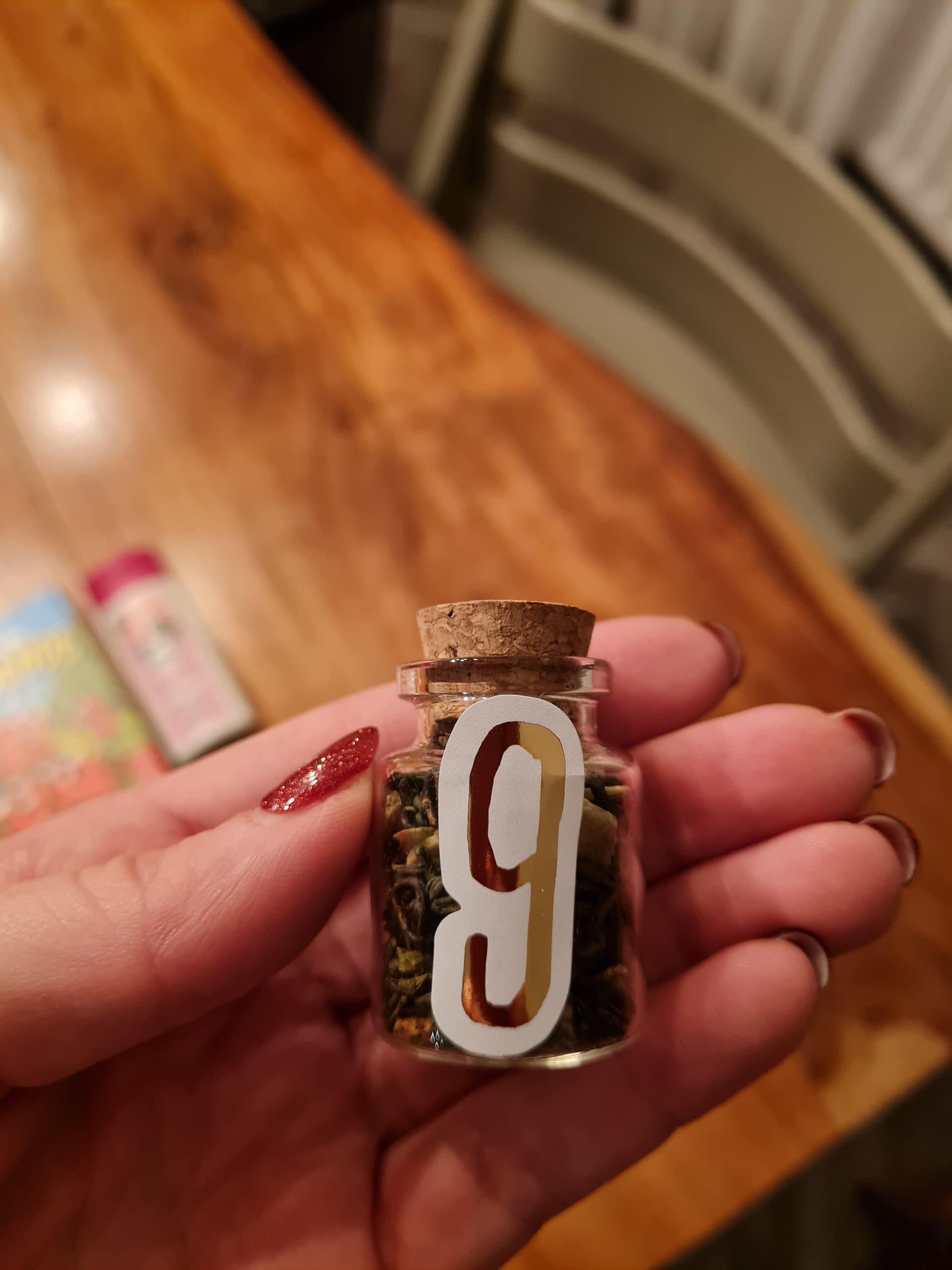 Dag 9! In het flesje zit perzik mandarijnthee. De snoepjes vandaag waren een soort karamel zeezout achtig? Ik was er geen fan van.