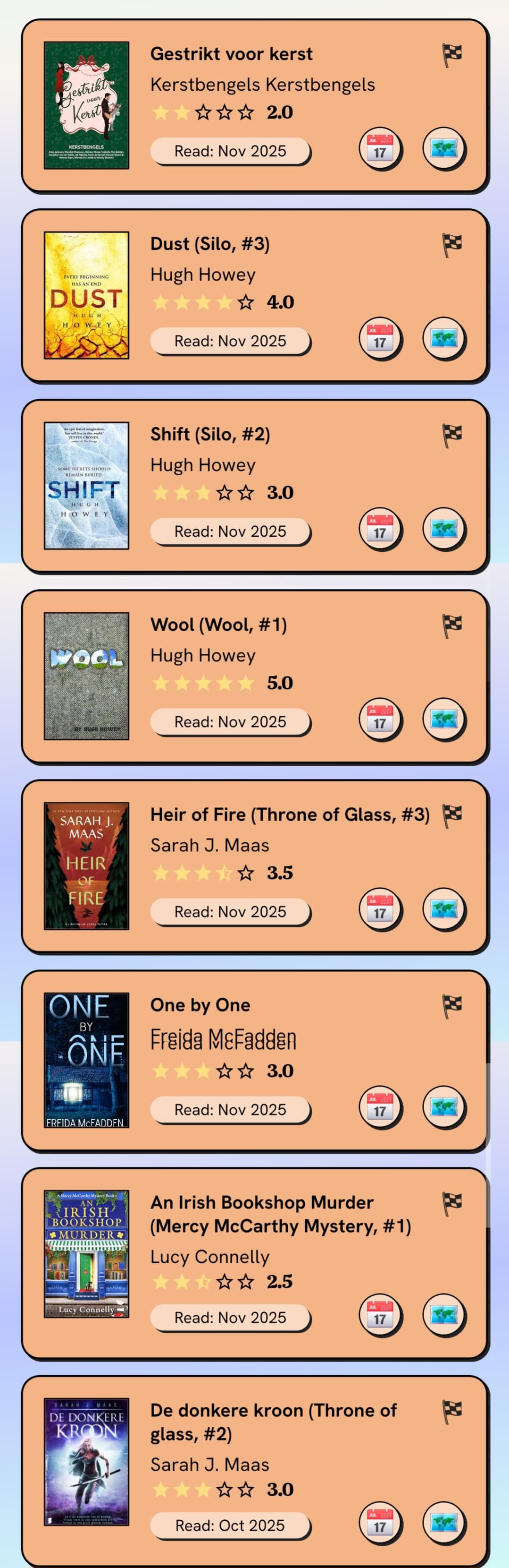 Ik ga niet nog een boek uitlezen dus hierbij mijn november lijstje.