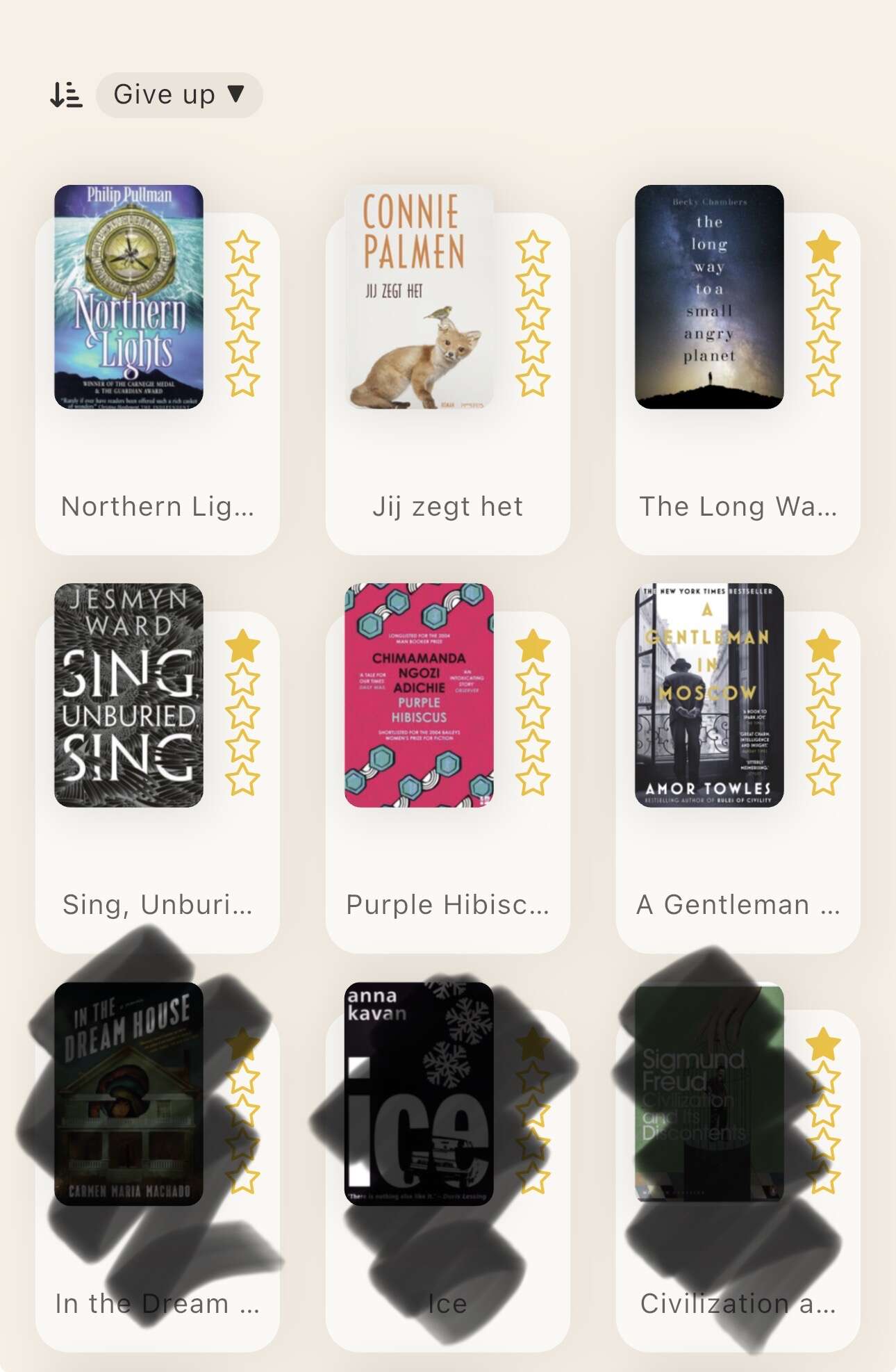 Ook zes boeken gelezen die ik besloot te DNF’en (ook deze lagen soms al sinds 2018 in de kast) na een stuk gelezen te hebben. Van A Long Way To A Small Angry Planet las ik meer dan de helft en heb ik echt goed over nagedacht, want ik had ook al de twee sequels in huis ![]()