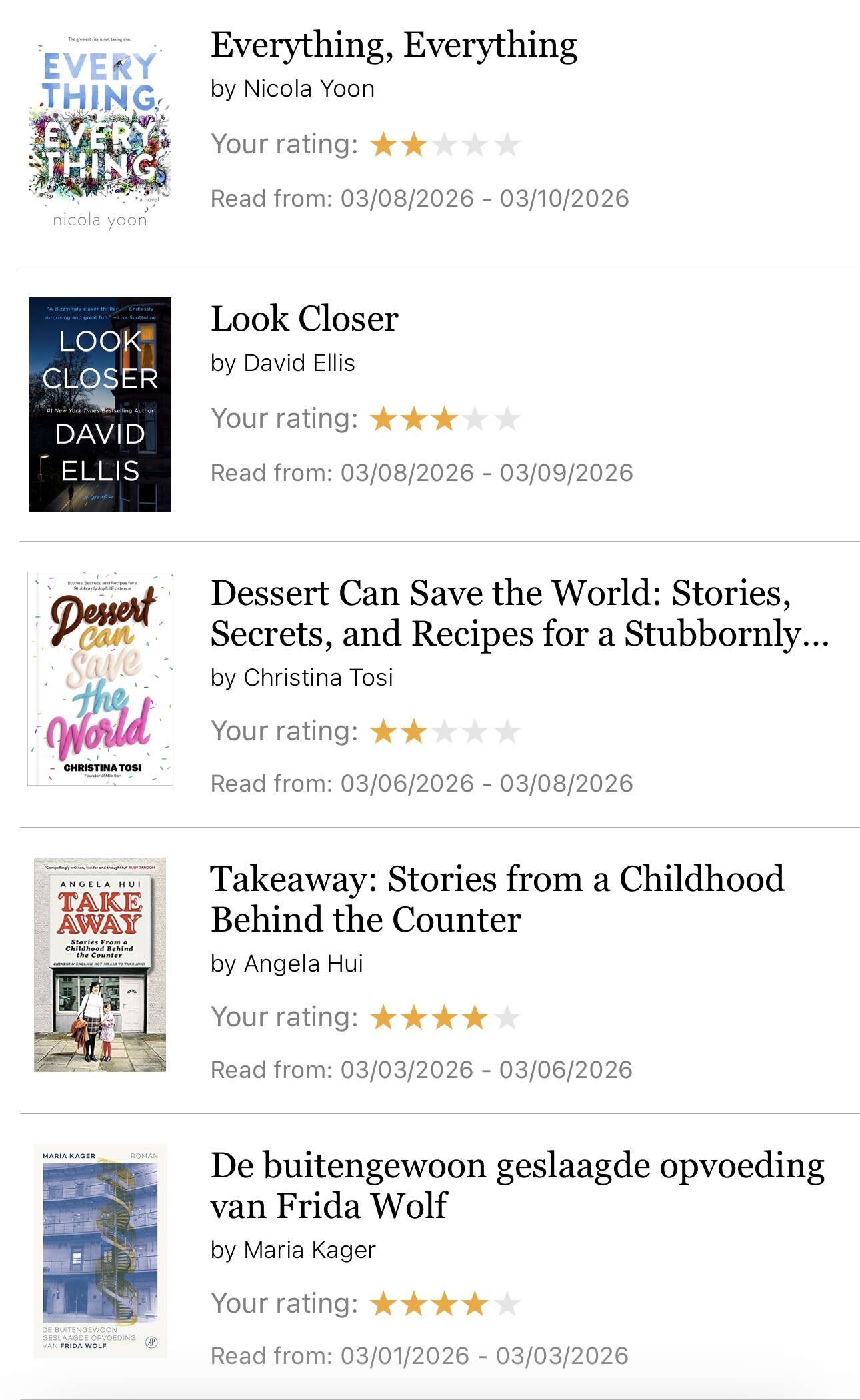 Edit: nog wel meer gelezen deze maand, waaronder Al het blauw van de hemel van Melissa Da Costa. Deze lag al een eeuw op mijn nachtkastje omdat ik er bij de eerste poging echt niet kon inkomen. Het is echt een joekel van een boek (650 pag.) dus dat ontmoedigde enorm. Deze maand een nieuwe poging en met lange leessessies in de lentezon vloog ik er ineens doorheen. Uiteindelijk wel van genoten.