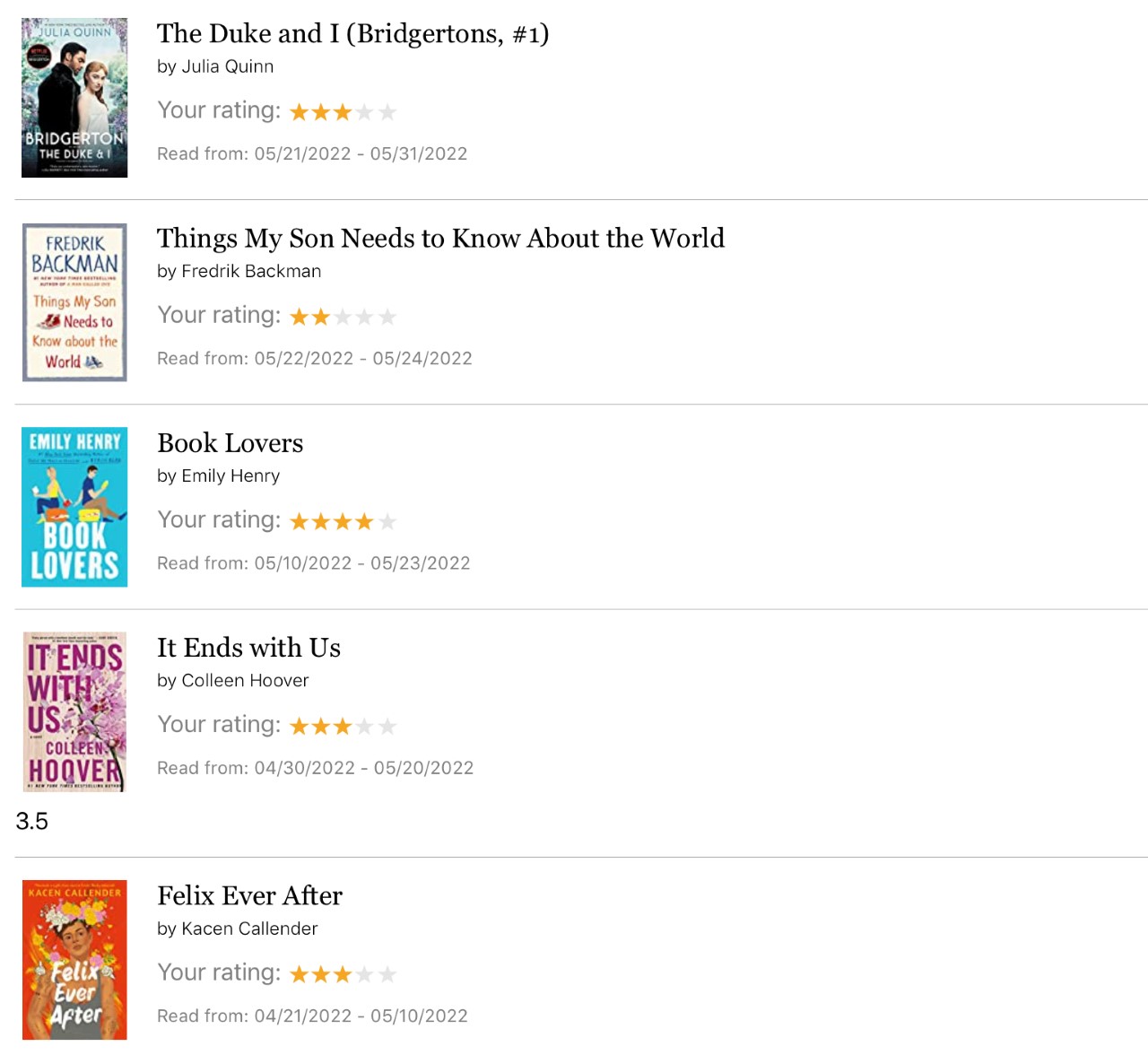 Mijn maand zat weer vol romance boeken en booktok hits haha, hoop in juni toch weer wat andere genres op te pakken maar we zullen zien.