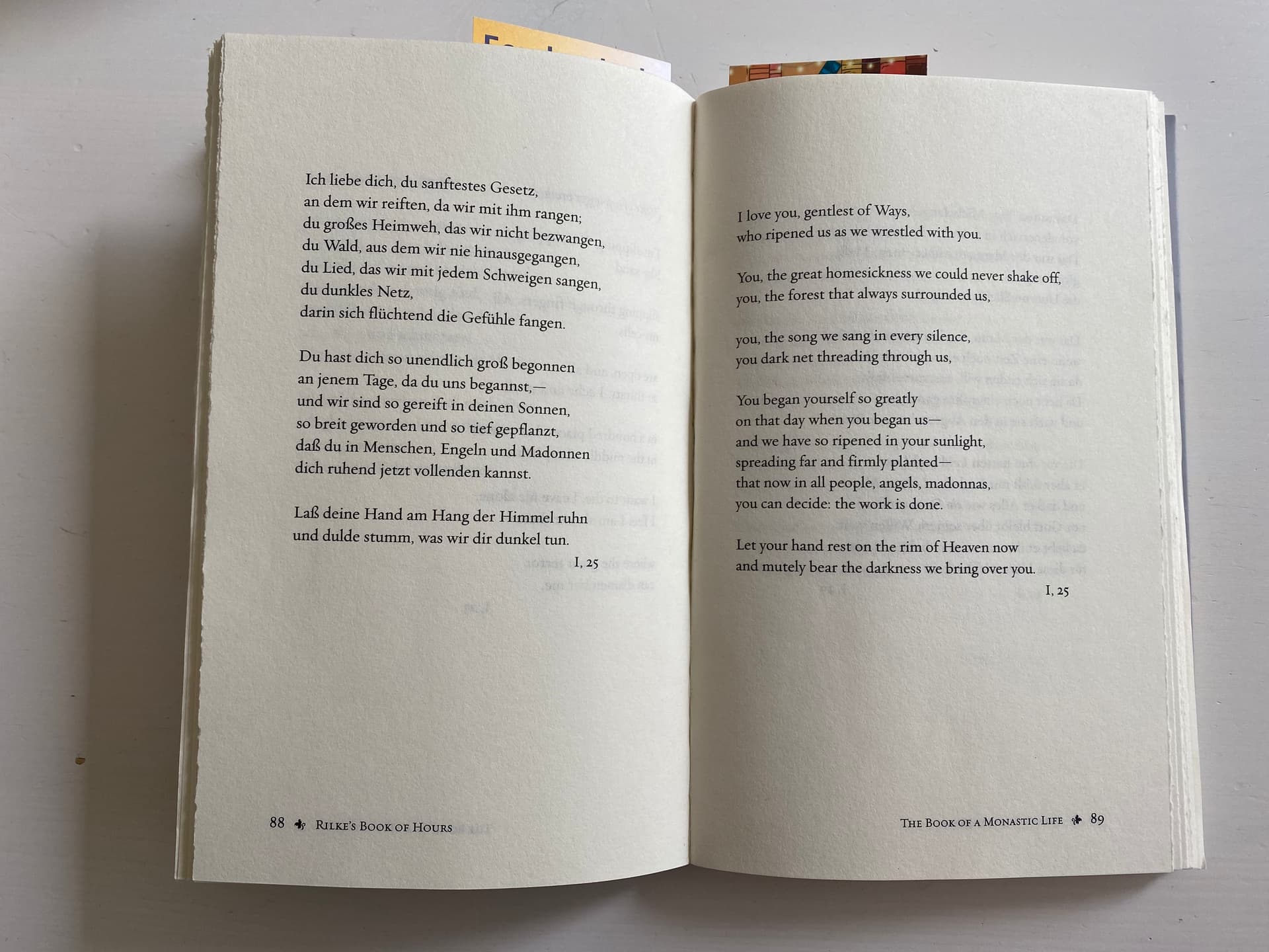 Verder ben ik begonnen in The Book of Hours van Rilke. Ik ben op de helft, maar wil het nu al 5 sterren geven.