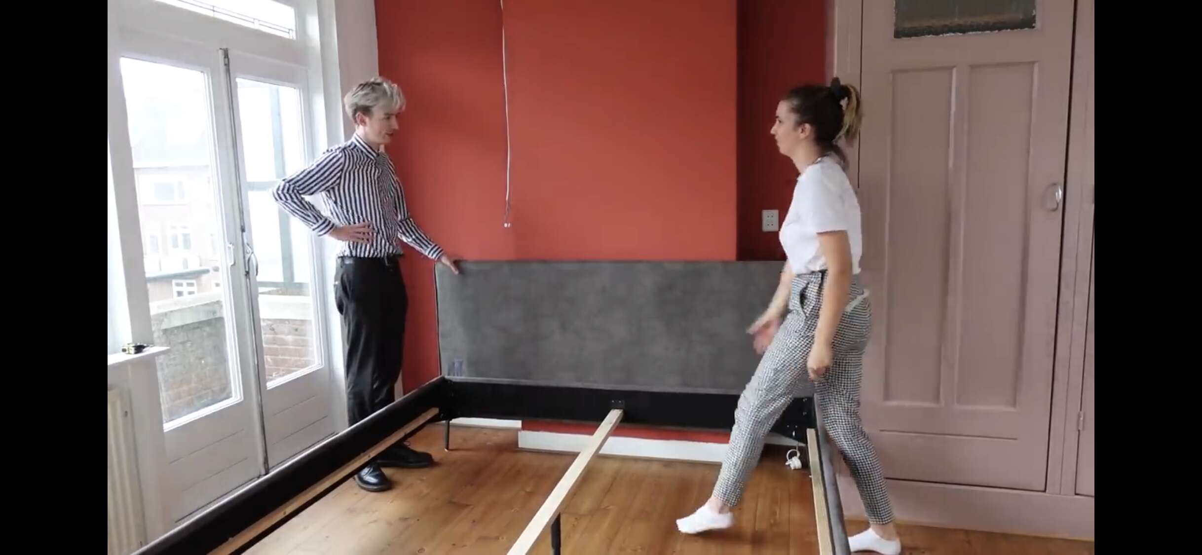Huh wat gek het bed zo tegen dat muurtje dat uitsteekt
