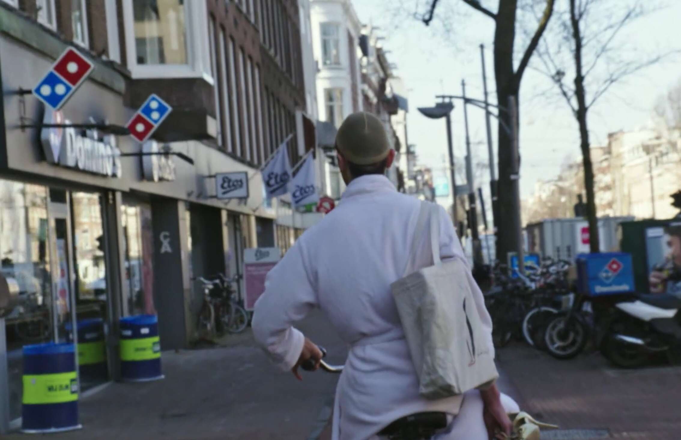 Zit aflevering 1 van Like Monica Seizoen 2 te kijken. Dâr broer die op een swapfiets in zân badjas +haarnetje fietst is wel een mood