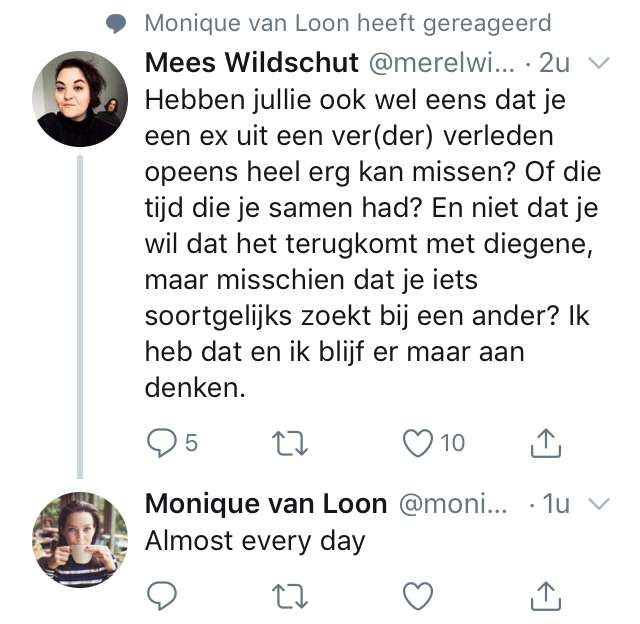 De laatste die online kwam was uiteindelijk ook geschreven door de hoofdpersoon zelf in plaats van door Willemijn of Martine, dus dat was ook een beetje vreemd.