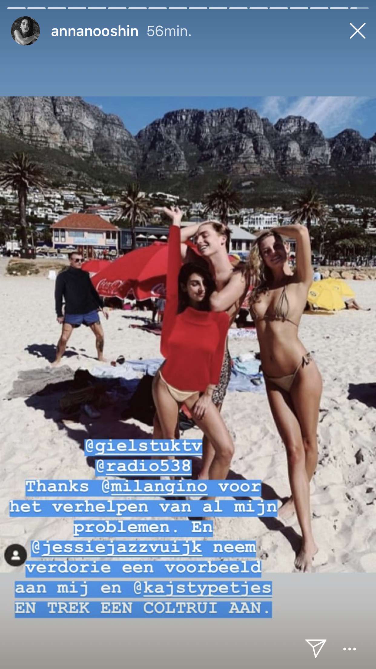 Tuurlijk vind ik het overdreven dat ze elke keer in mini bikini’s foto’s post, maar om nou live op de radio daar over te zeuren vind ook wel weer kinderachtig.