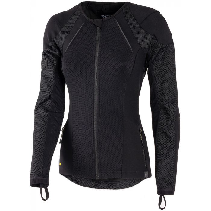 Deze zijn mijn zomerjassen. De zwarte is de KNOX Urbane Pro MK3 voor dames, heel luchtig dus voor warm weer. Voordeel is dat je er makkelijk een trui of zo overheen kan dragen. De Rev’it jas is een doorwaai jasje, vind ik voor langere ritten meer geschikt.