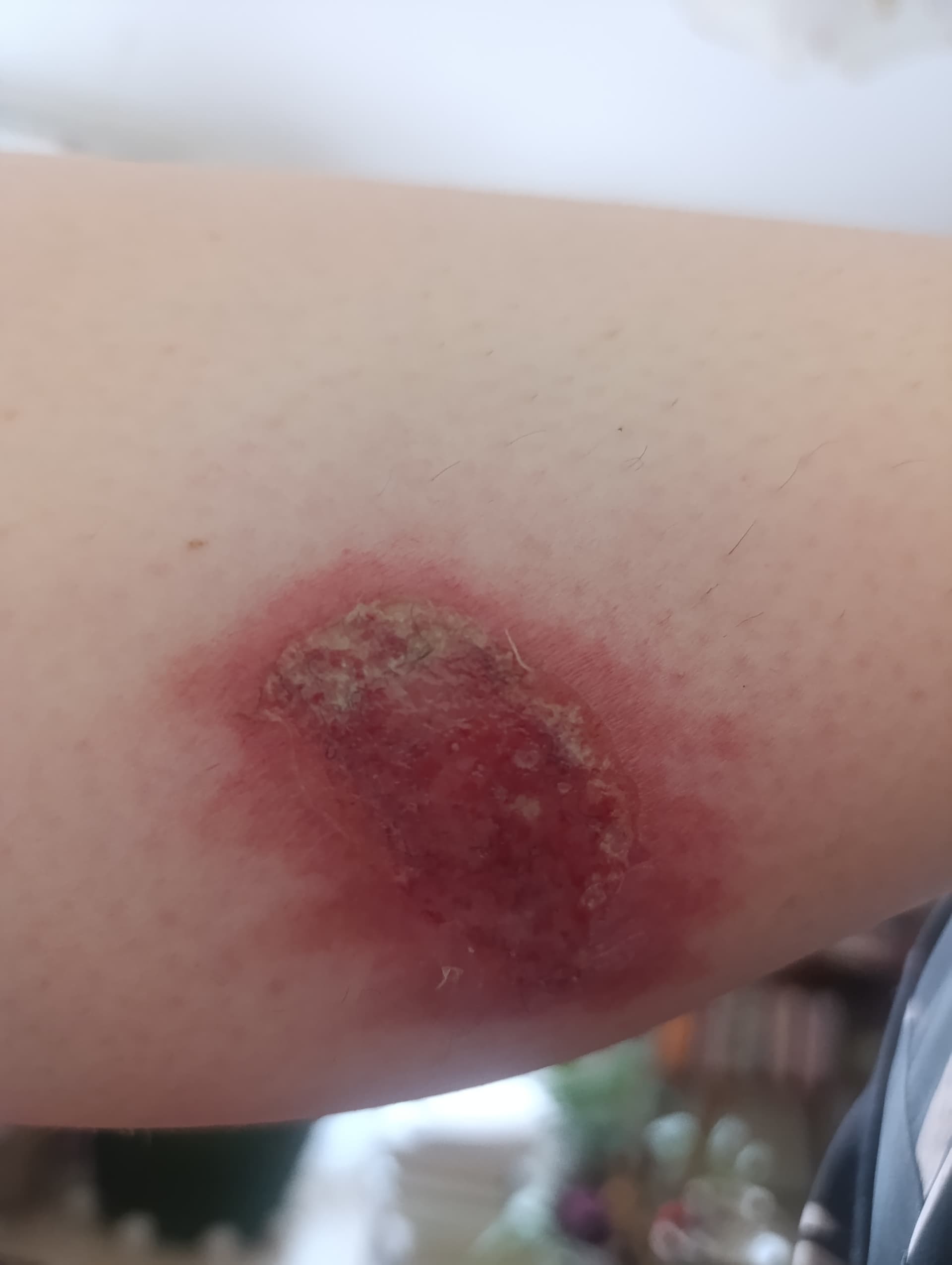 Ik heb me een week geleden verbrand en een paar dagen later heb ik per ongeluk te hard gewreven met de handdoek na het douchen. De huid is toen meegekomen en nu bedek ik de wond met zalfgaasjes.