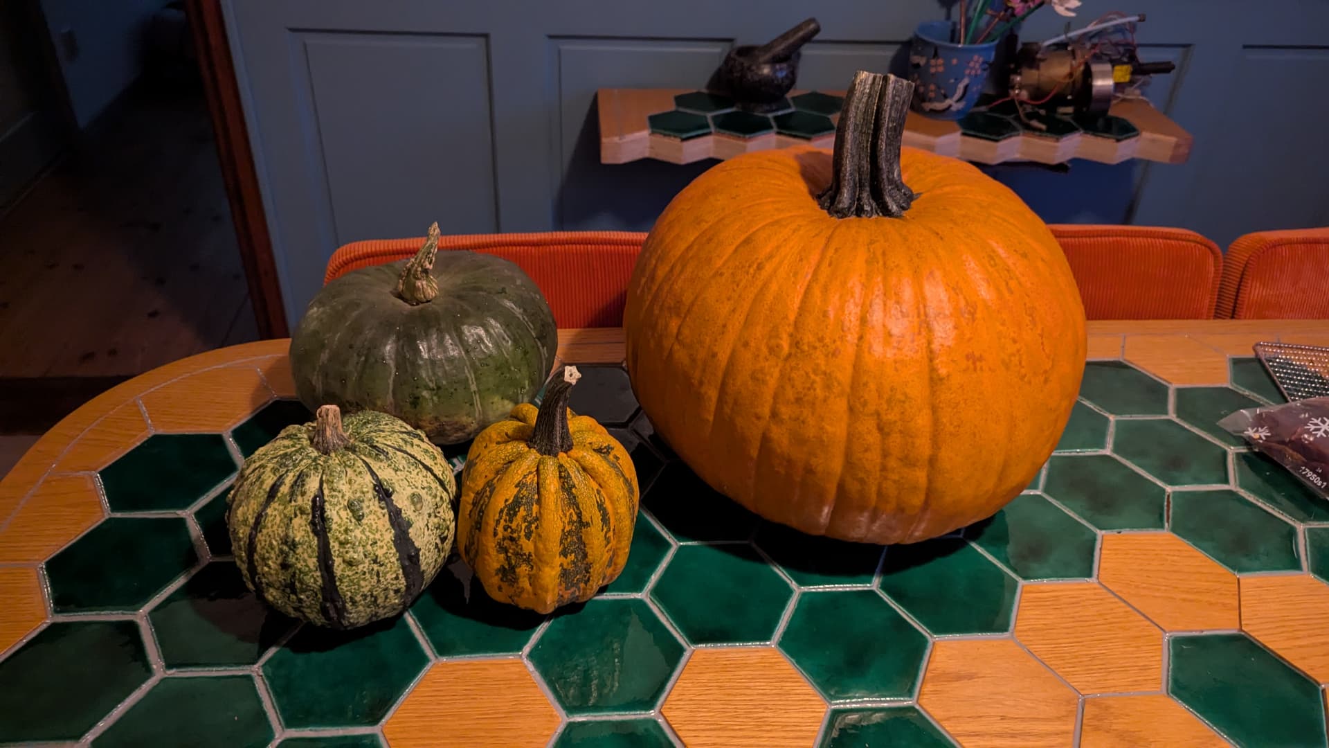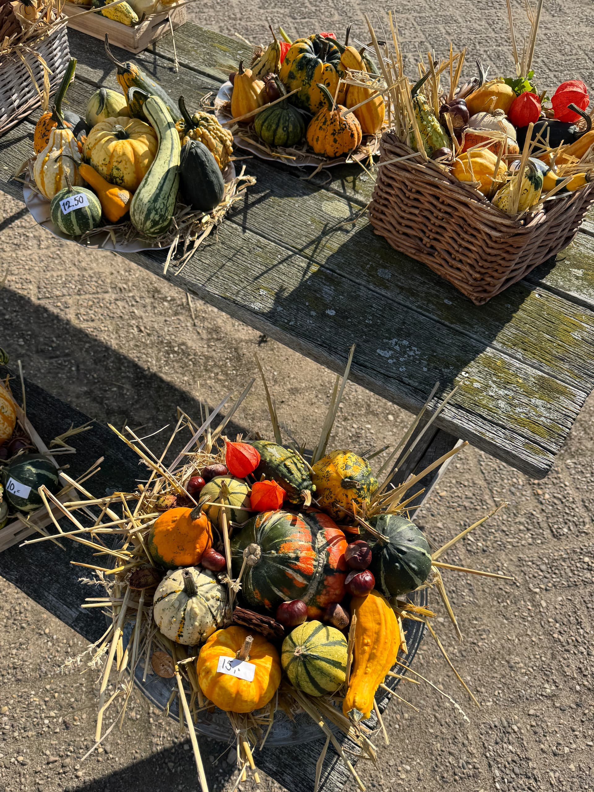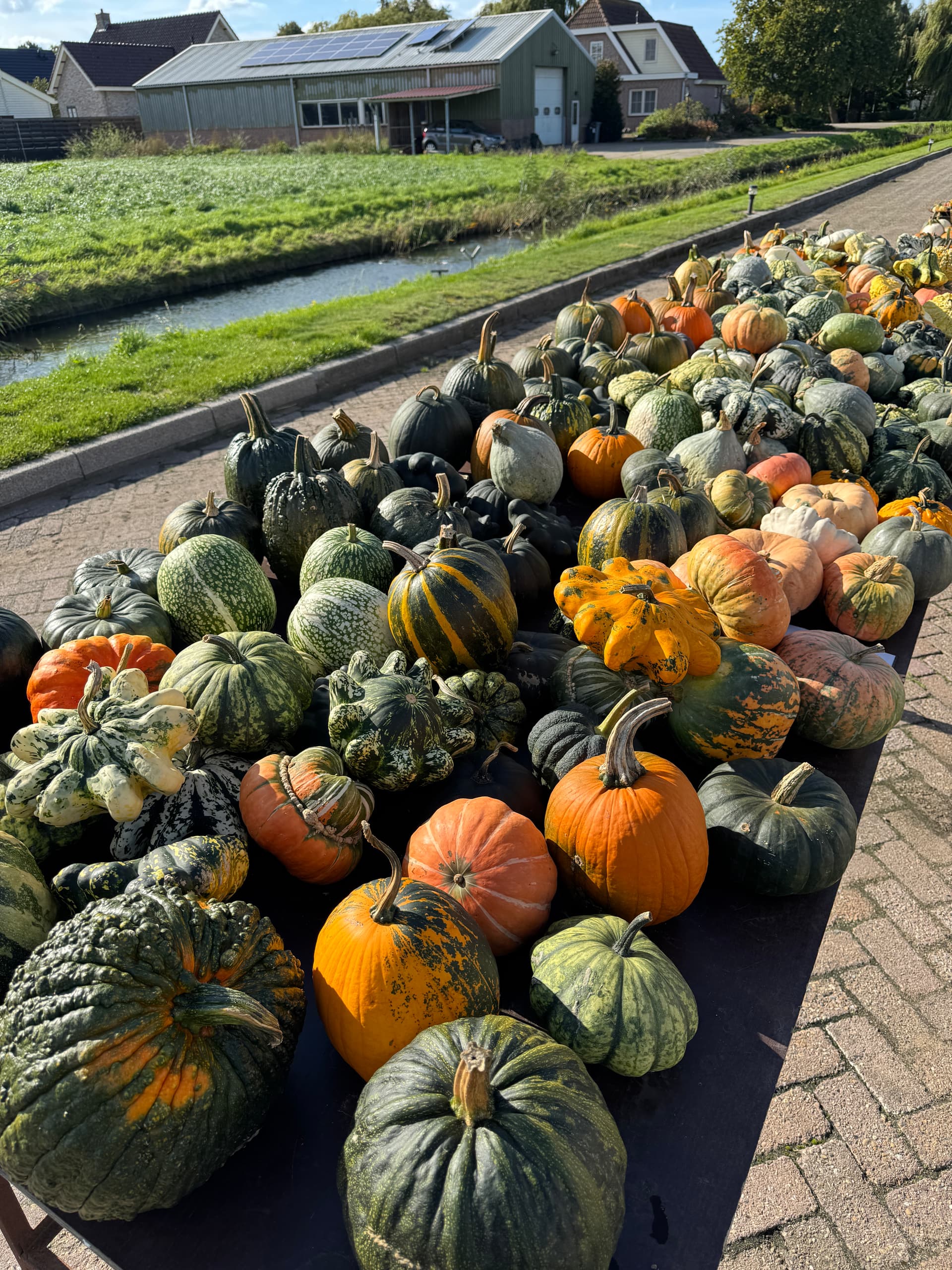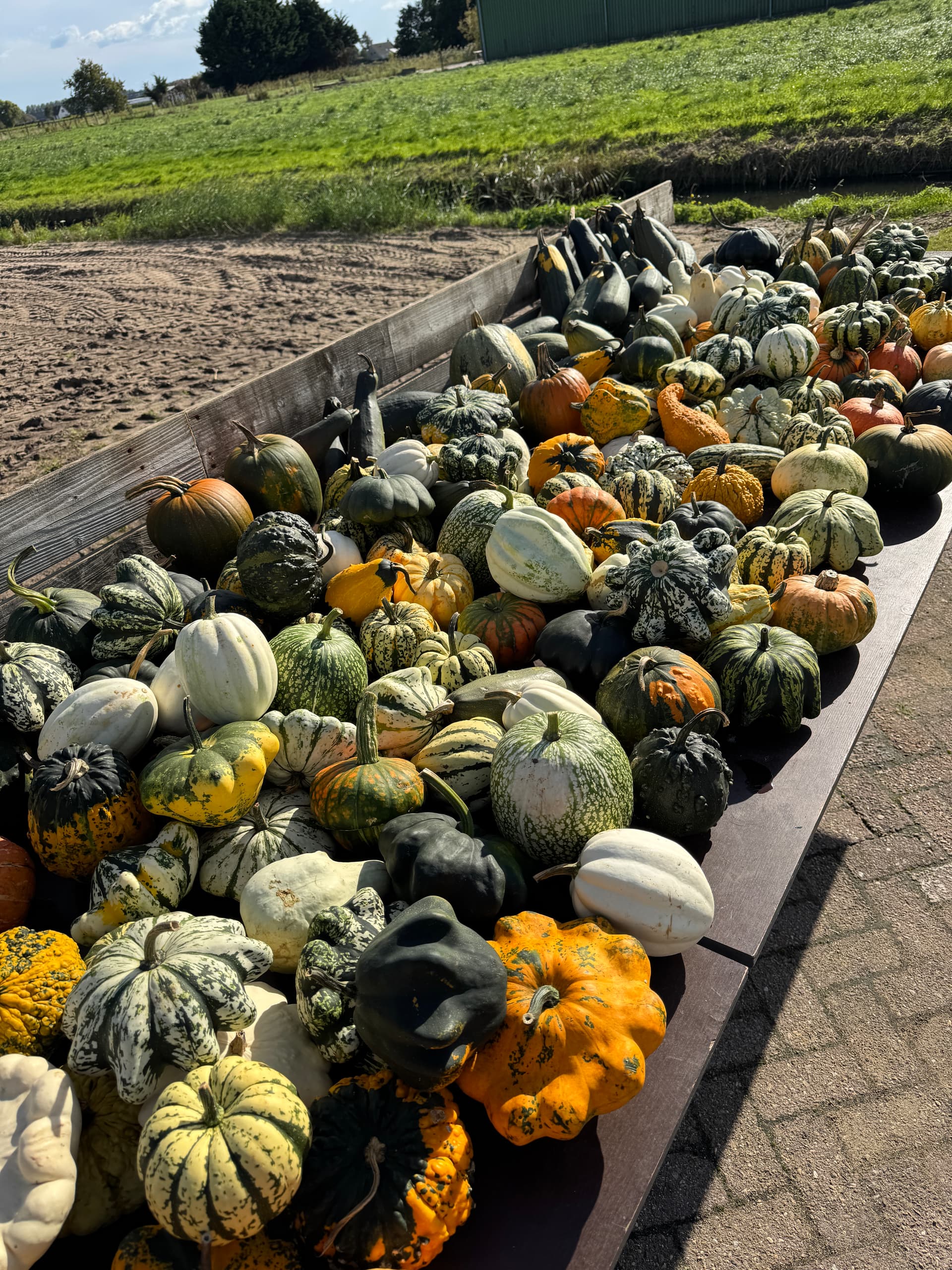Daarna zag ik een bordje met pijl naar een erf waar ze pompoenen verkochten, dus daar ook nog even gaan kijken.