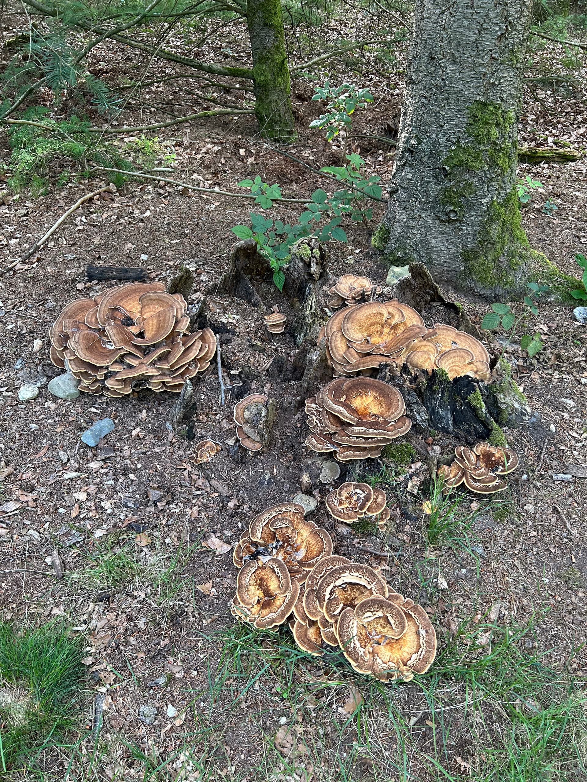 Er zijn dit jaar ook veel reuzenzwammen te zien (geweest misschien al), die zijn zoals de naam al zegt reusachtig. Voornamelijk op boomstronken en dode bomen.
