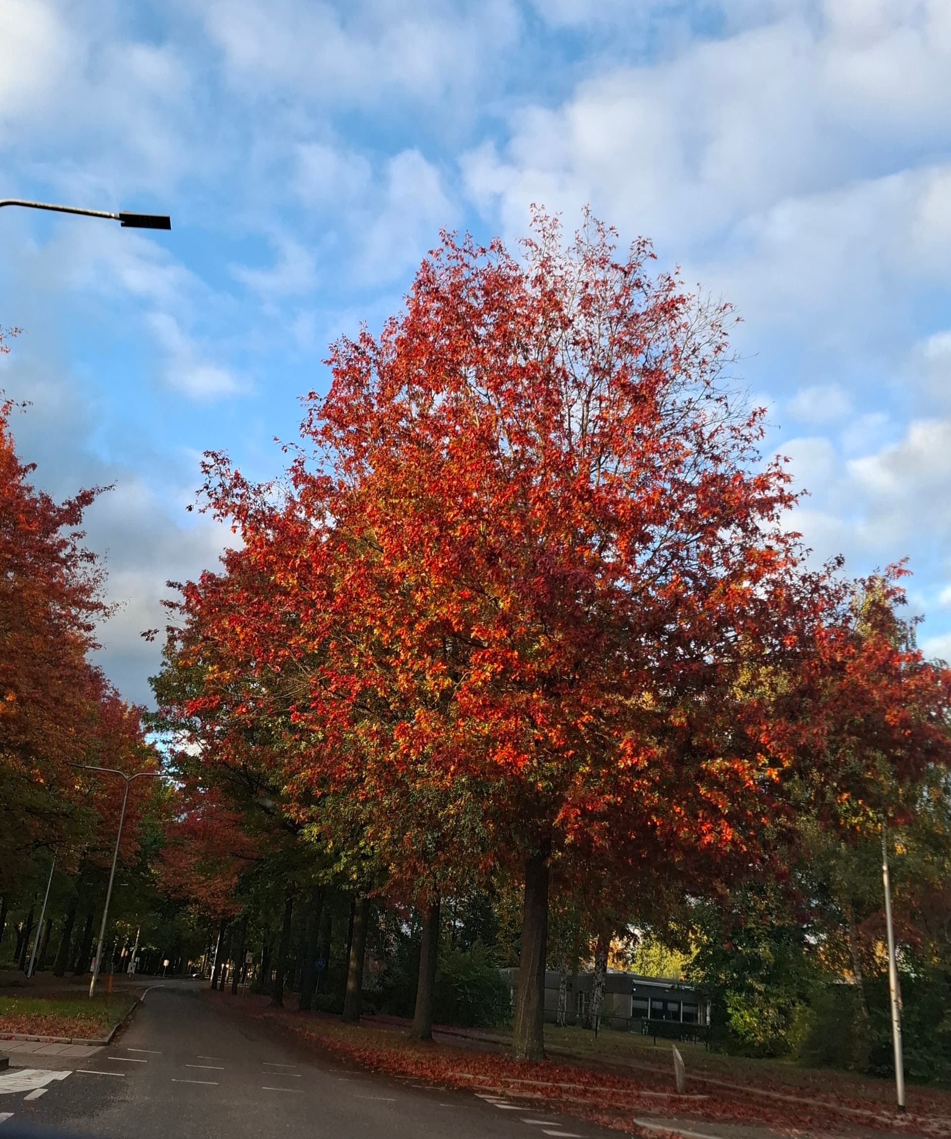Ik vind het hier in de omgeving echt nog best groen, maar hier en daar inderdaad wel zo’n mega felle boom! Die zijn zo prachtig ![]()