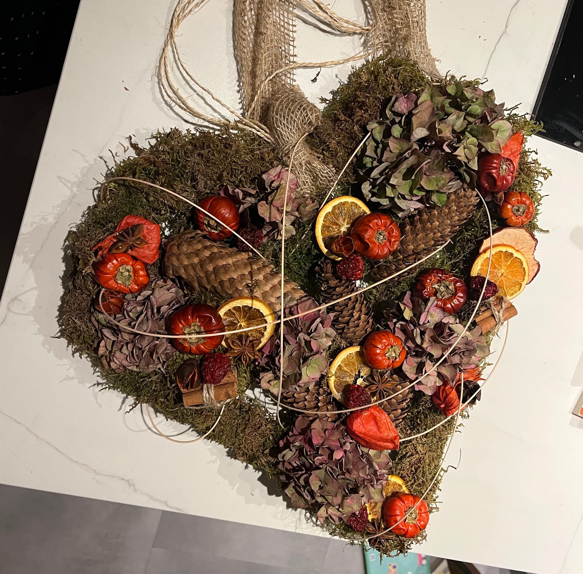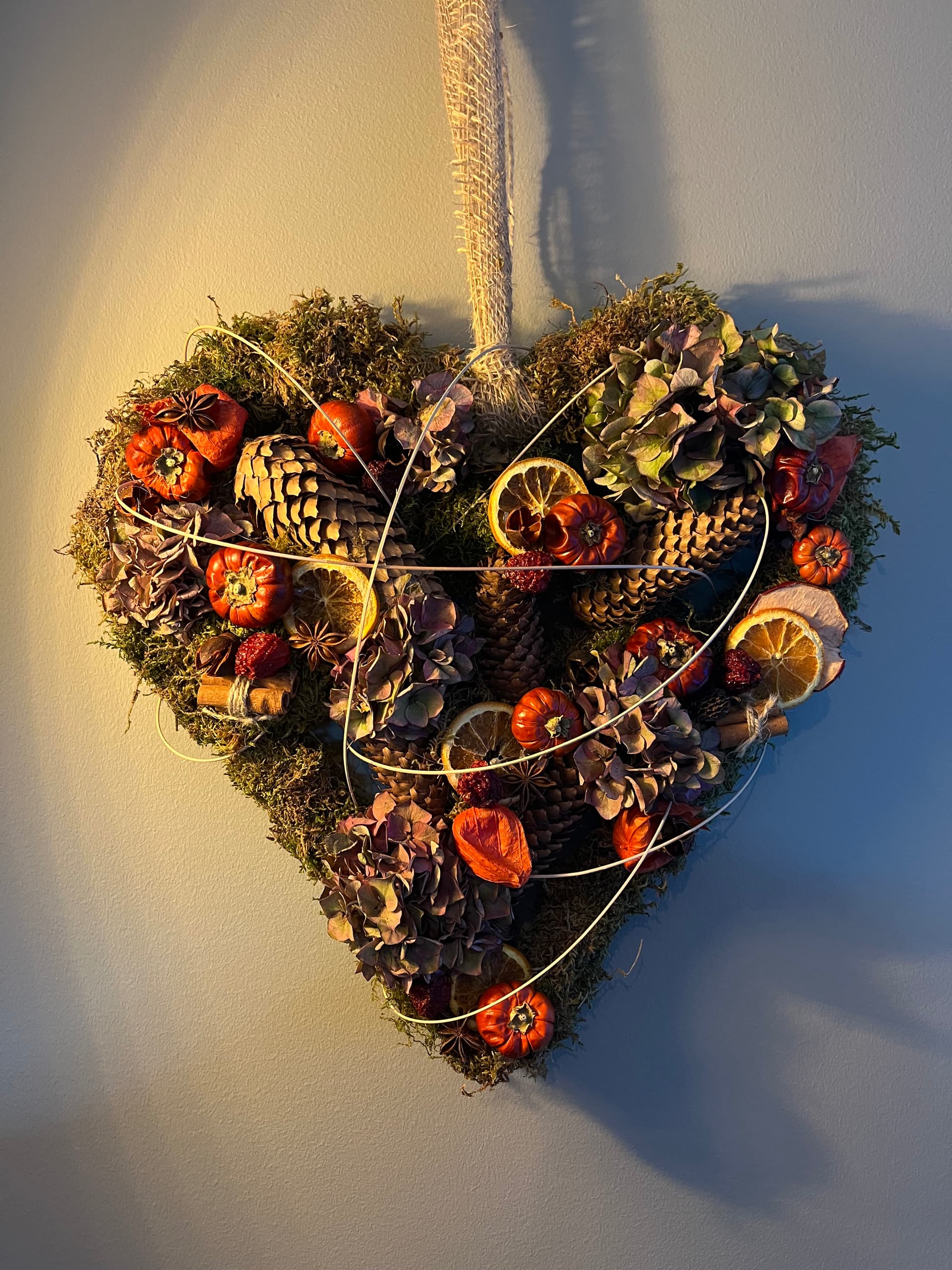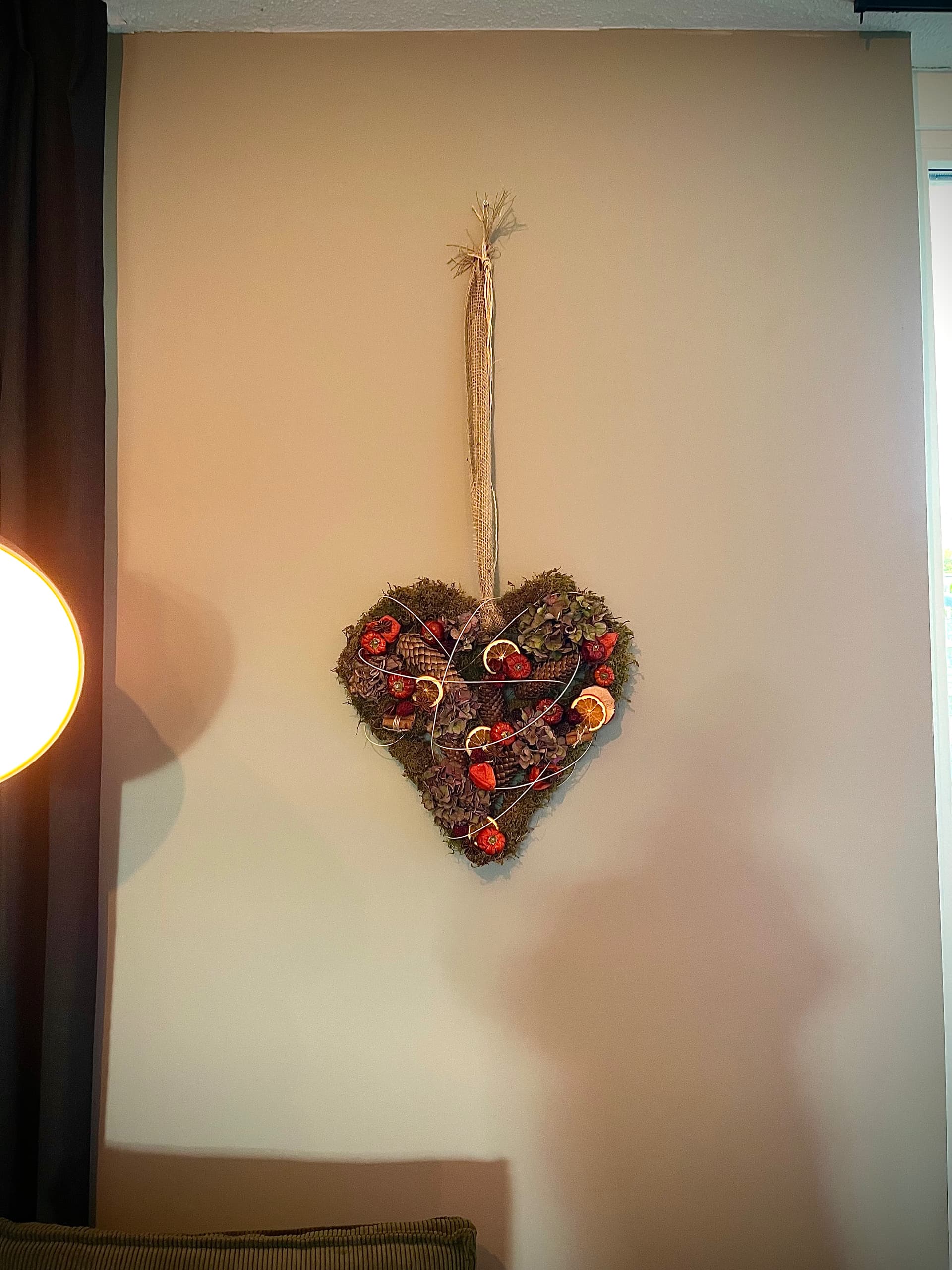 Niet de beste foto’s door het grijze weer vandaag, maar ik heb gisteren een herfst workshop gevolgd en een hart gemaakt voor aan de muur