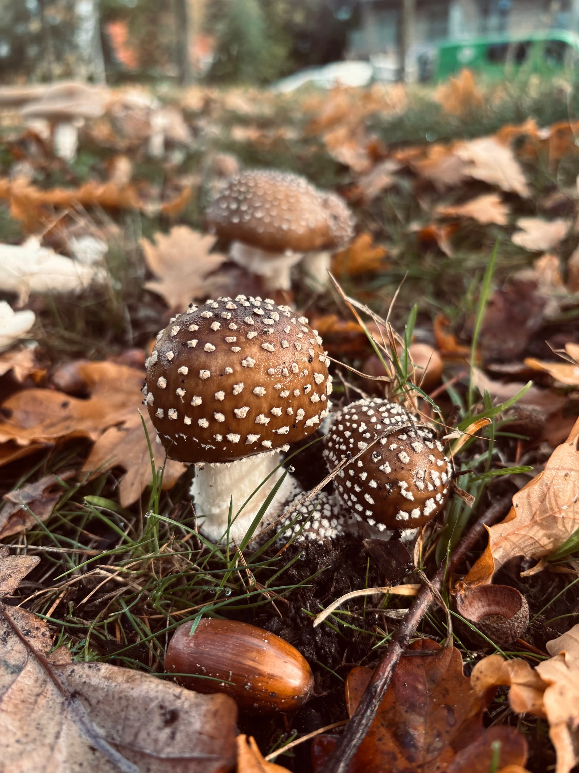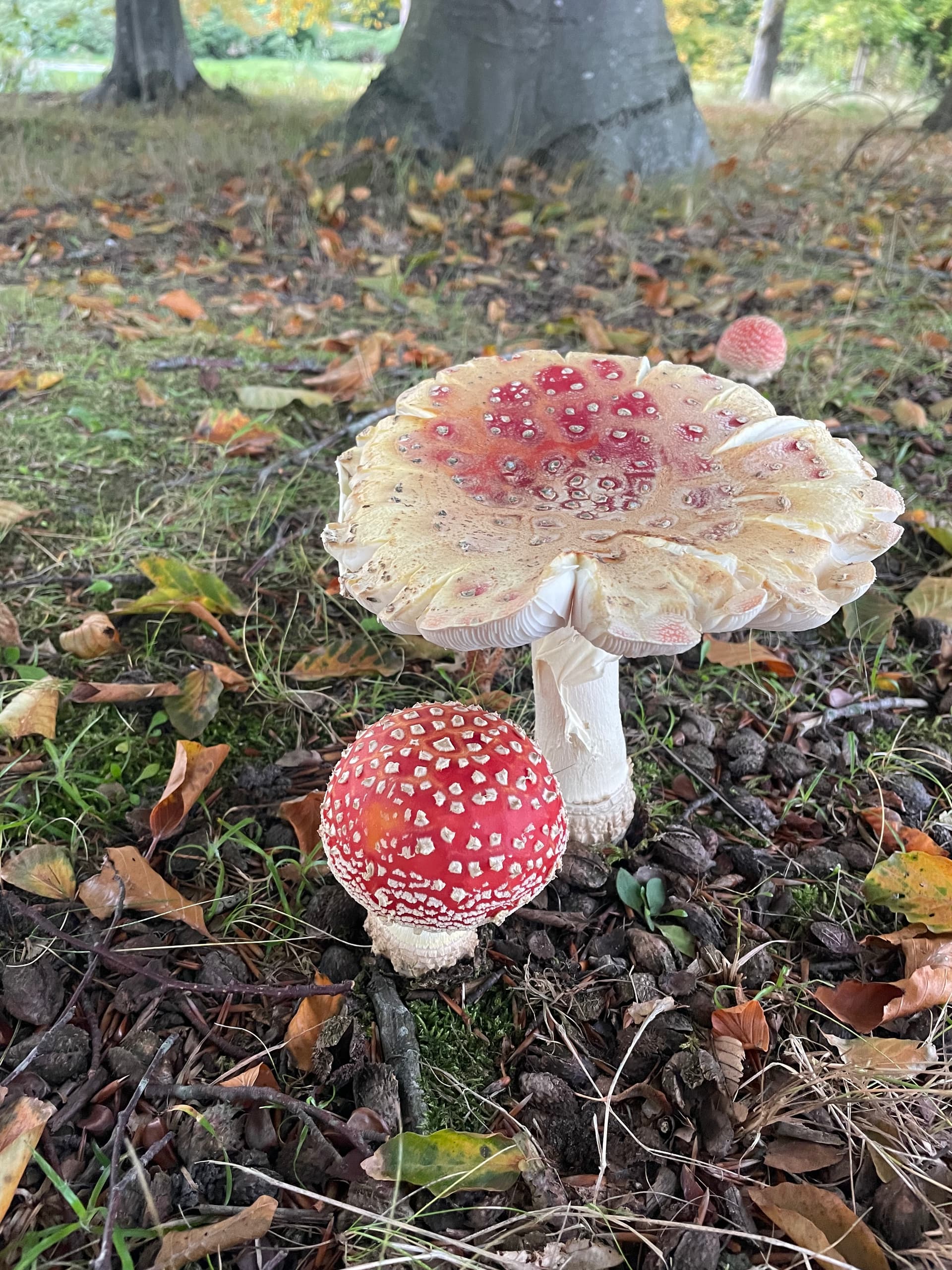 Bruine vliegenzwammen? Gaaf! Nooit gezien. Ze zullen vast anders heten.