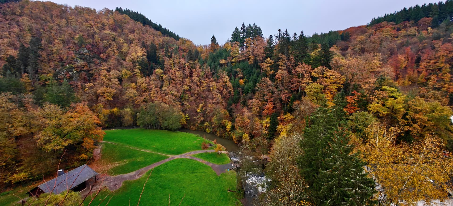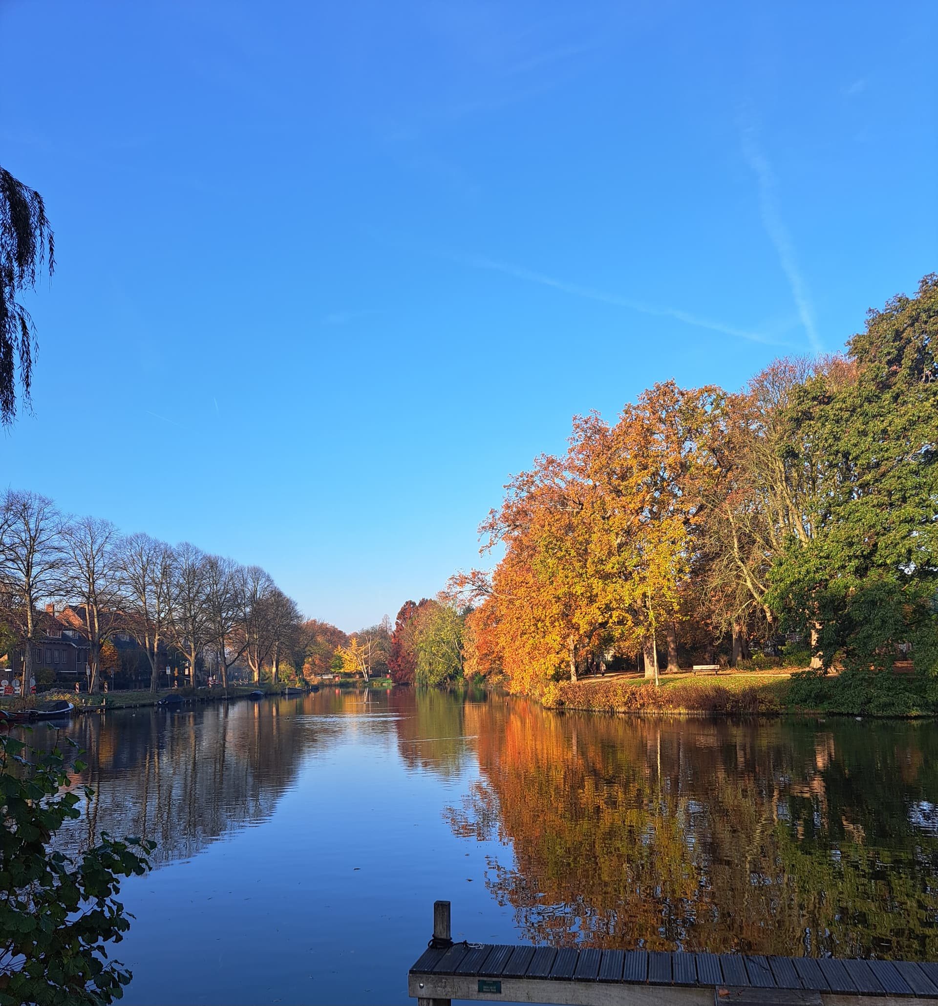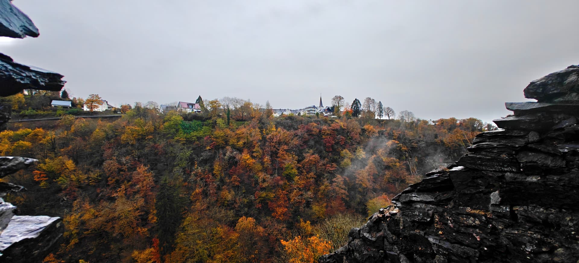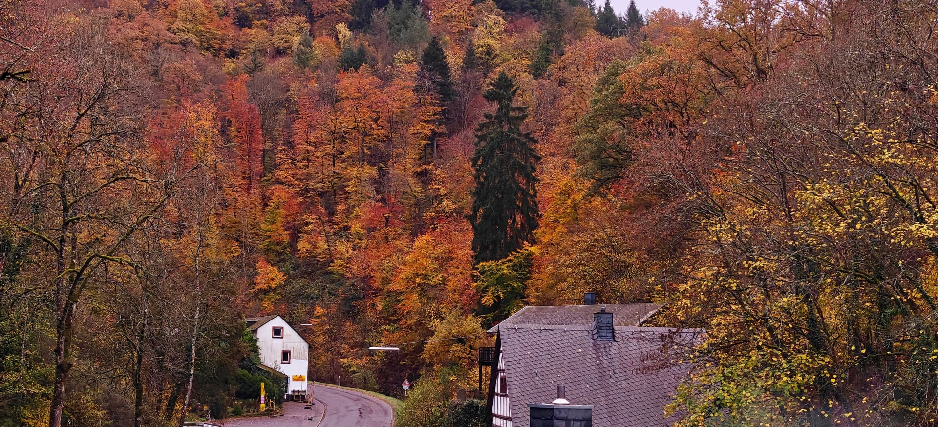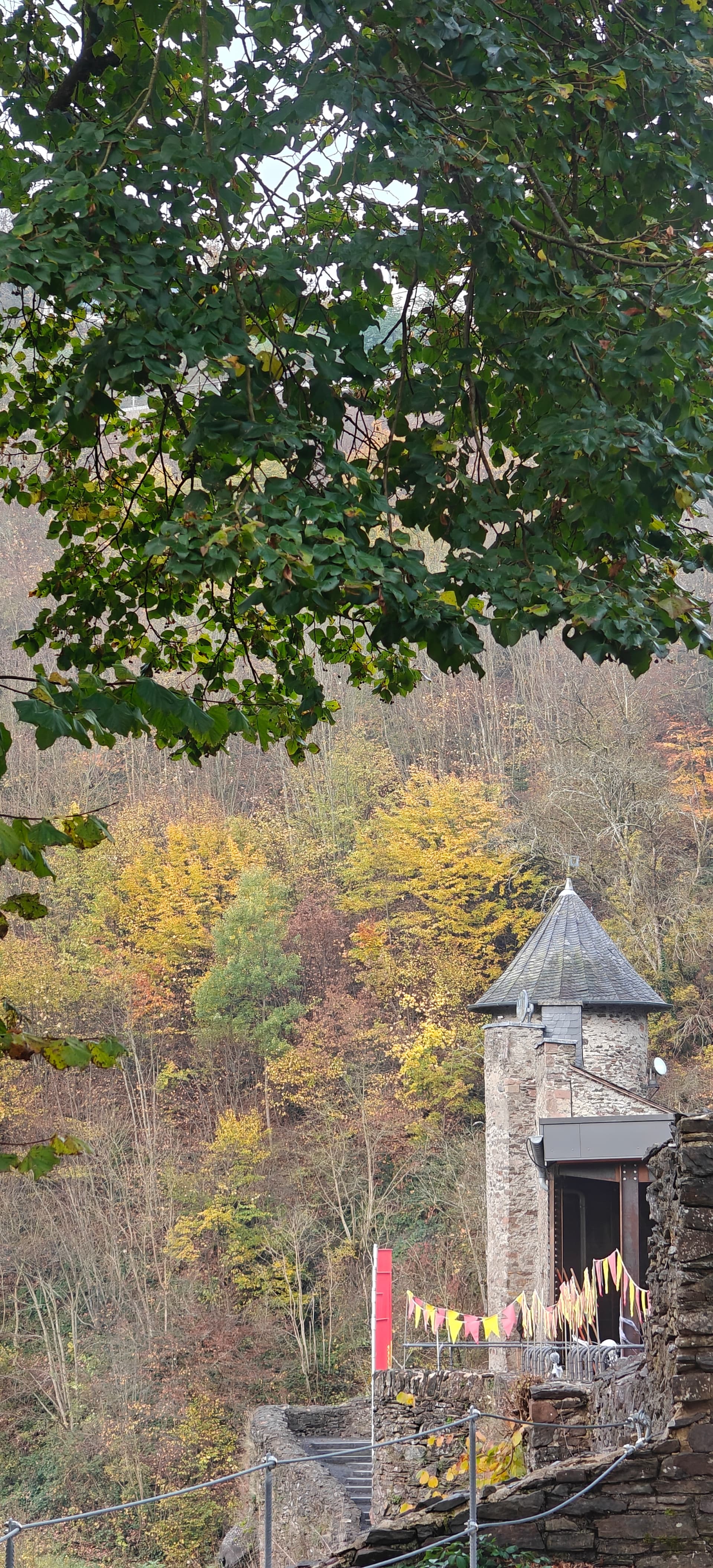 Ik ben inmiddels al terug, de lokale gids gaf wel aan omdat het zo lang heet was (30 graden) dat de bomen de bladeren vast hebben gehouden en de herfst relatief laat is.