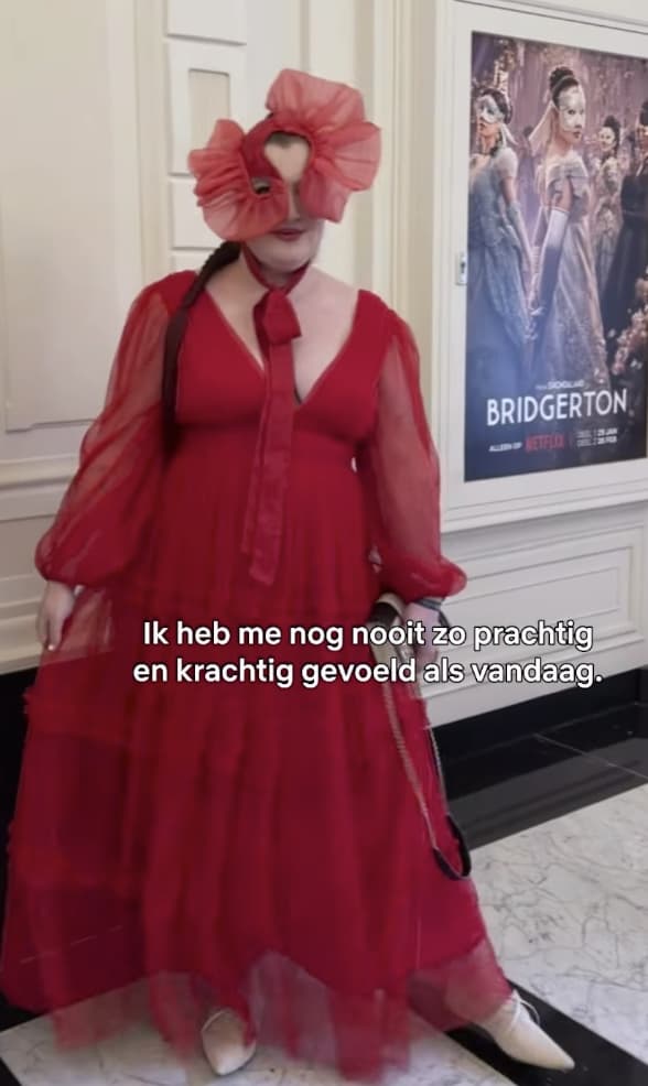 Ik hoop dat ze nu inziet dat de kleur van haar jurk en haar lippen veel meer voor haar doen dan de 50 tinten beige/poederroze die ze normaal draagt. Het staat haar prachtig