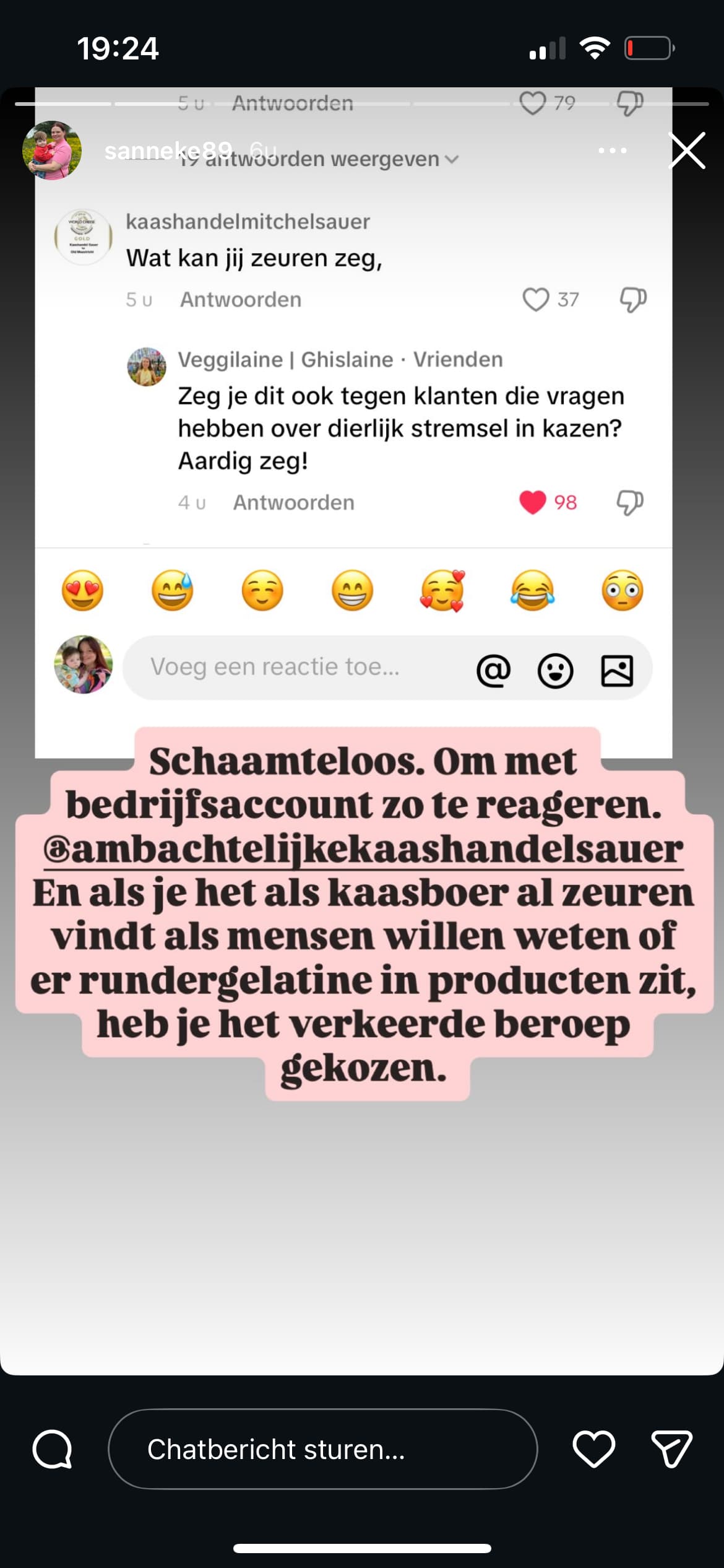 Mijn kaas verkoper zit openbaar ruzie te maken met sanneke en veggi lane. Love hem. Geen idee waar het over gaat maar kaas is 10/10.