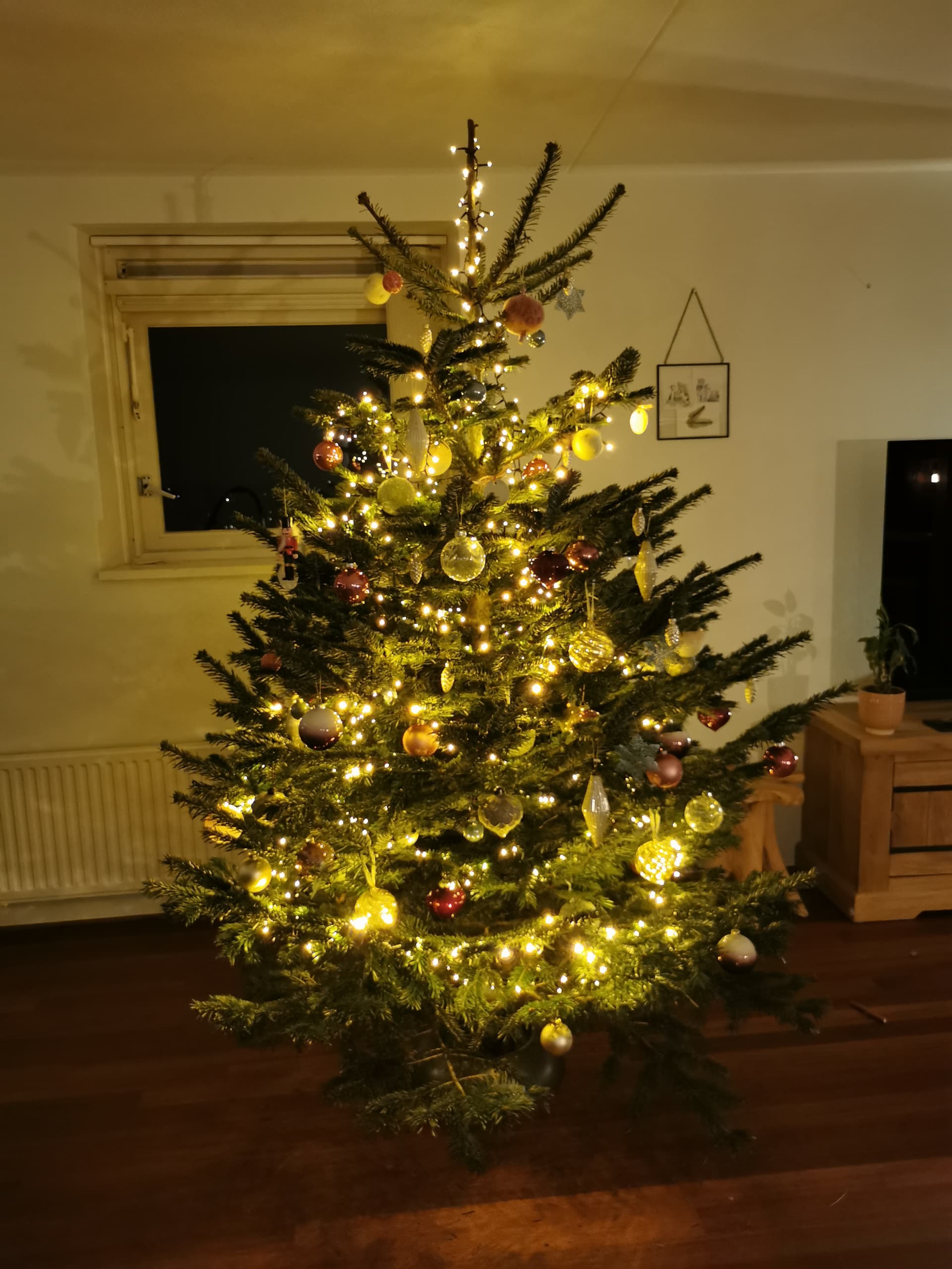 Ze verkopen bij gorillas nu een kerstboom en misschien wil ik dat wel. Maar het is zonder kluit. Zegt mij niks. Heb ik dan iets nodig van een standaard of een pot of waar zet je dat neer?